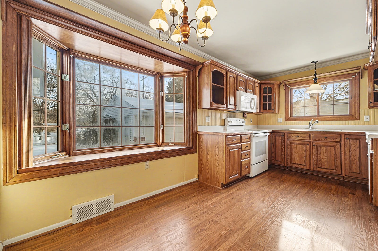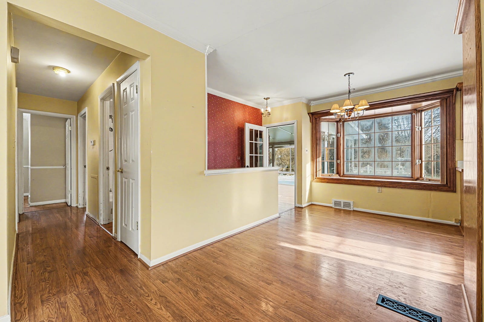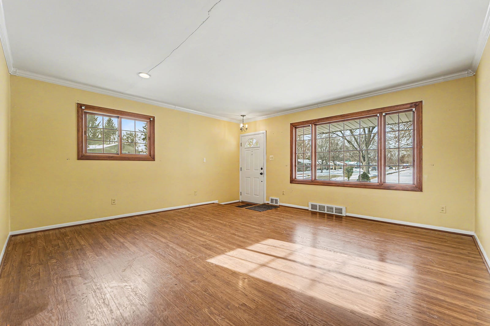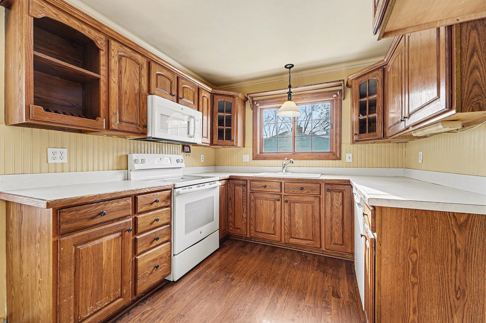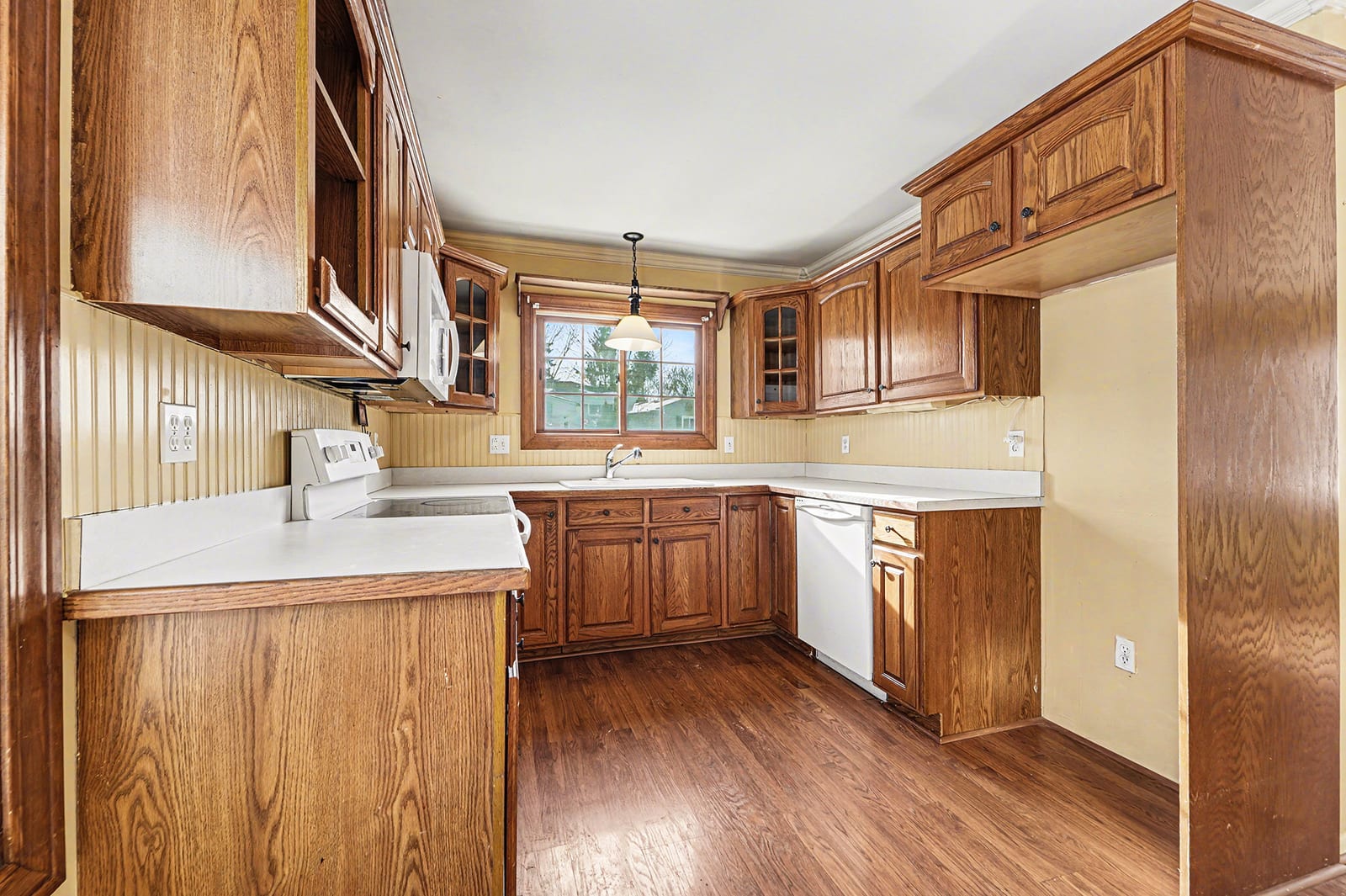 Solid brick ranch in the sought-after Lake Pointe neighborhood of Plymouth! The west-facing orientation fills the home with beautiful natural light throughout the day, highlighting the large living room with crown molding and recessed lighting. The kitchen features a charming breakfast nook with a bow window, perfect for morning coffee. Just off the main living space, the 2007 sunroom addition invites you to enjoy peaceful views of the private backyard and paver patio, with gas heat for year-round use. Three comfortable bedrooms with hardwood flooring and a full bath complete the main level. The partially finished basement offers a rec room, a half bath, a laundry room, and a workshop. Outdoor highlights include a fenced backyard with gate access to the township walking path and soccer park, underground sprinklers, and an updated concrete driveway (2000). The electric panel and service entry were updated in 2007. New garage door opener in 2026. Plymouth-Canton schools with low Plymouth Township taxes. Ideally located near Farrand Elementary, Hines Park trails, shopping, dining, and more. Schedule your showing today!