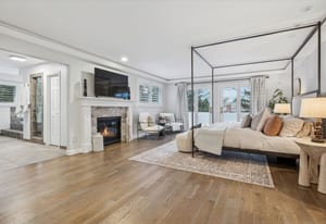 Upstairs, the spacious primary suite offers a serene escape with its own fireplace and private walkout deck. The spa-inspired primary bath features a luxurious soaking tub and an oversized walk-in closet. Two additional bedrooms complete the upper level.