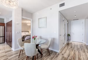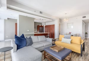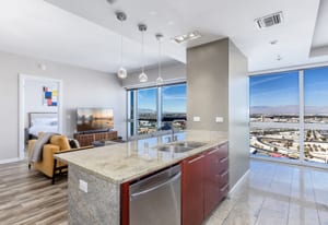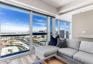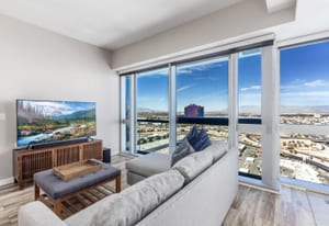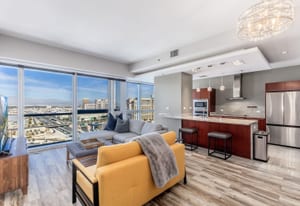 Welcome to your luxurious high rise in the heart of Las Vegas! This stunning, fully furnished, upgraded 2-bed + den sits on the 29th floor boasts breathtaking panoramic views of the iconic Las Vegas Strip! The central gourmet kitchen, complete with central island, ample cabinetry & brand new appliances, is a chef's dream. Whether you're entertaining guests or enjoying a quiet evening in, this space is as functional as it is beautiful. The Primary suite offers unparalleled vistas of the cityscape, dual closets & a thoughtfully designed bath with double sinks & separate tub & shower. Includes 1 parking space. The Martin, renowned for its exceptional service & amenities, ensures a lifestyle of comfort and sophistication. Benefit from 24-hour valet & security services, indulge in the indoor/outdoor spa, take a dip in the pool surrounded by cabanas, utilize the fitness center, or optimize your productivity in the well-equipped business center. Utilities & internet are included!
