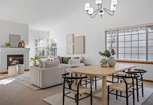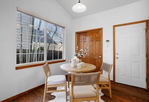The sun-filled main level welcomes you with freshly painted living and dining spaces highlighted by expansive windows and a cozy Gas-log fireplace. The adjacent eat-in kitchen features hardwood floors, abundant cabinetry, a pantry, new microwave, newer dishwasher, and a breakfast nook overlooking the private backyard. Step outside to a fully fenced yard with a patio, retractable awning, serene garden areas, and an outdoor sprinkler system.