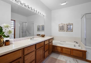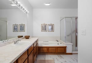 The spacious primary suite offers southern exposure, a walk-in closet, and a 5-piece ensuite bath with stylish gray-veined vinyl flooring. A dedicated office/den with plantation shutters, secondary bedroom, full guest bath, and a laundry room complete the main floor. Air Conditioning, a Central Vac System & Attic Fan are added bonuses.