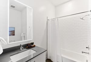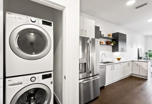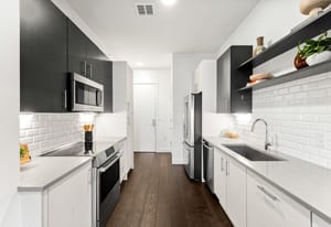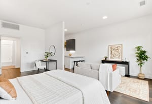 Welcome home to this top-floor studio in S*Park, Denver's LEED Platinum-certified community in the RiNo Arts District. Unit RD310 offers 663 square feet of sun-drenched living space, complete with wide plank hardwood floors, a kitchen with stainless appliances, quartz countertops, stylish subway tile backsplash and floating shelves. High ceilings and windows throughout give the space a bright, open feel — and a Juliet balcony brings in city views. An in-unit stacked washer/dryer, secure reserved parking, and a dedicated storage unit make this a true lock-and-leave lifestyle.