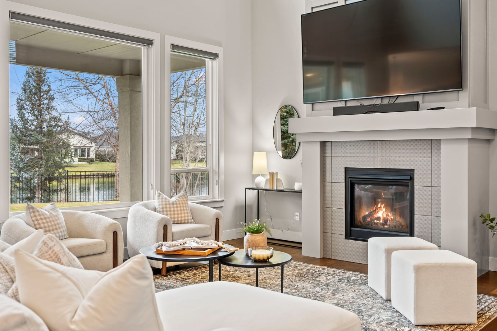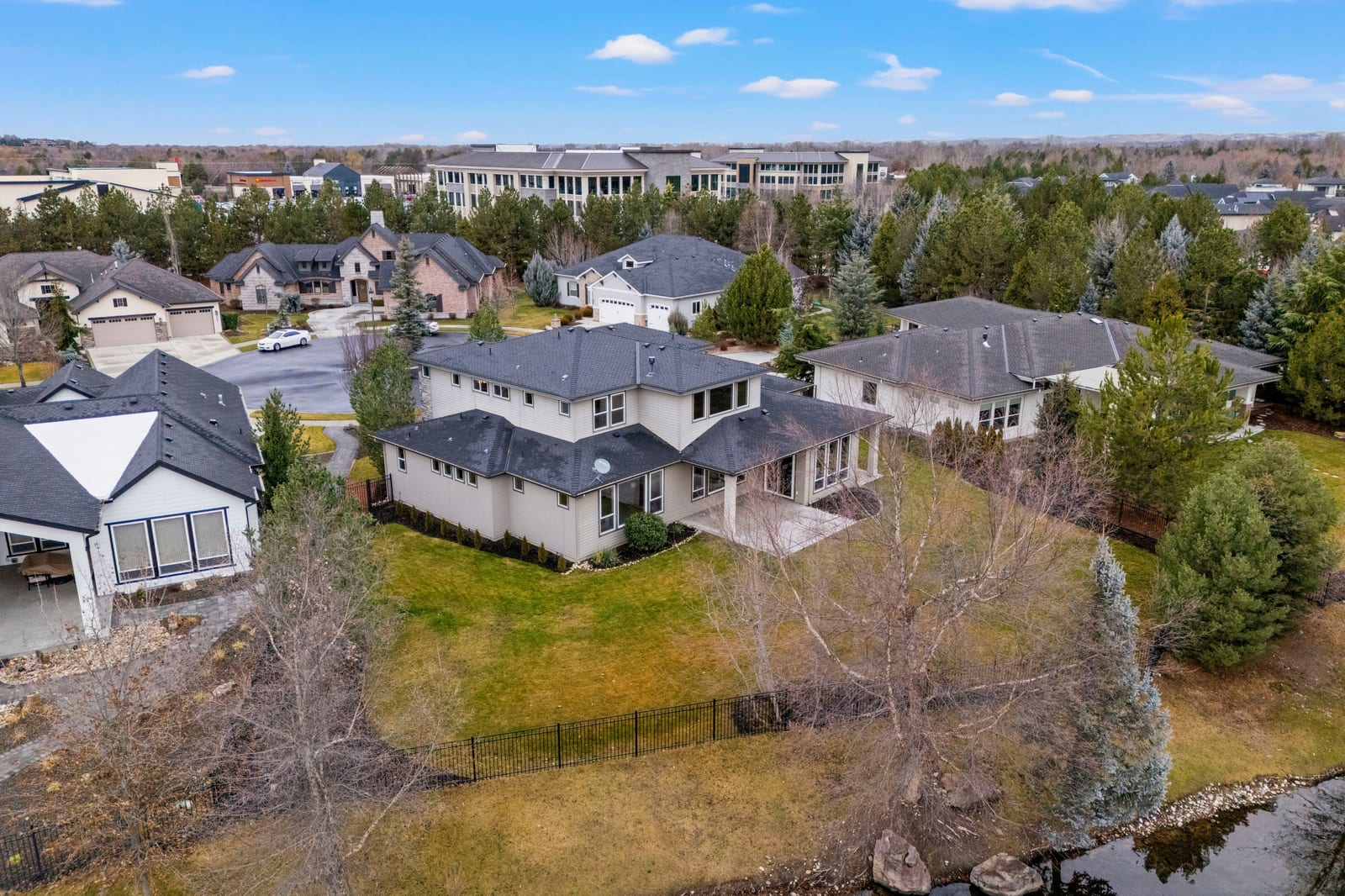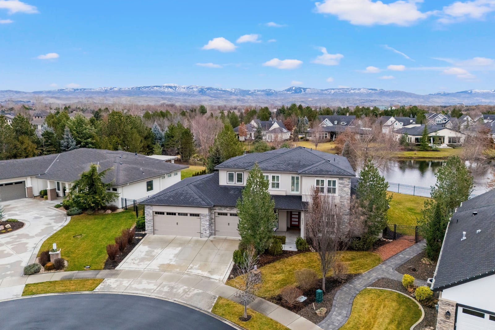 Tucked within a quiet cul-de-sac in the sought-after, gated Lakemoor community, this exceptional Eagle home offers privacy, comfort, and scenic beauty. Just over a mile from the Boise River and Greenbelt, and close to dining, entertainment, medical facilities, and downtown Eagle, the location is both peaceful and convenient. The bright, open kitchen and great room are filled with natural light and showcase stunning waterfront views through expansive windows. The main-level primary suite is a true retreat with his-and-hers closets and a luxurious bath. A second main-level bedroom with ensuite works perfectly as a guest suite or second primary, while a dedicated office provides ideal work-from-home ...