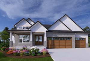 This thoughtfully designed new-construction rambler blends modern sophistication with effortless livability, offering an exceptional open-concept layout ideal for both daily living and entertaining. The expansive great room is anchored by a striking fireplace and accented with elegant faux wood ceiling beams, creating a warm yet contemporary atmosphere. The chef’s kitchen features premium appliances, sleek quartz countertops, and generous prep and gathering space, built for hosting without feeling showy. Premium flooring runs throughout the main living areas, reinforcing durability and refined style. The private main suite is a true retreat, featuring a spa-inspired bathroom, a freestanding soaking tub, and refined finishes. Two additional bedrooms and 2.5 bathrooms provide flexibility for guests or family members. The walkout basement is a standout feature, offering 10-foot ceilings and additional square footage made possible by the garage being built on a suspended slab—an ideal setup for a theater room, golf simulator, or expansive recreation space. The home also includes a Control4 security and smart home system with one year of prepaid service for added peace of mind. With three bedrooms, 2.5 bathrooms, and a spacious layout designed for entertaining, this home offers a rare combination of modern luxury, thoughtful craftsmanship, and low-maintenance living in a brand-new construction setting. Estimated completion is July.