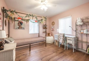 Recently renovated, this romantic cottage looks like a page taken from an interior design magazine! The main living area is inviting and cozy, enhanced with dramatic colors, easy apply wall coverings, and an Edison bulb chandelier. Experience peace of mind with newer double paned windows, roof, furnace, AC and stainless-steel appliances. Spacious kitchen with quartz countertops, laminate flooring and gas range. Mountain views from primary bedroom. Updated bathrooms. Enjoy entertaining on the outdoor patio. Backyard includes raised garden boxes, trampoline, shed and is fully fenced for privacy, kids and pets. Fully automated sprinkling system. The portable car port is big enough to cover...