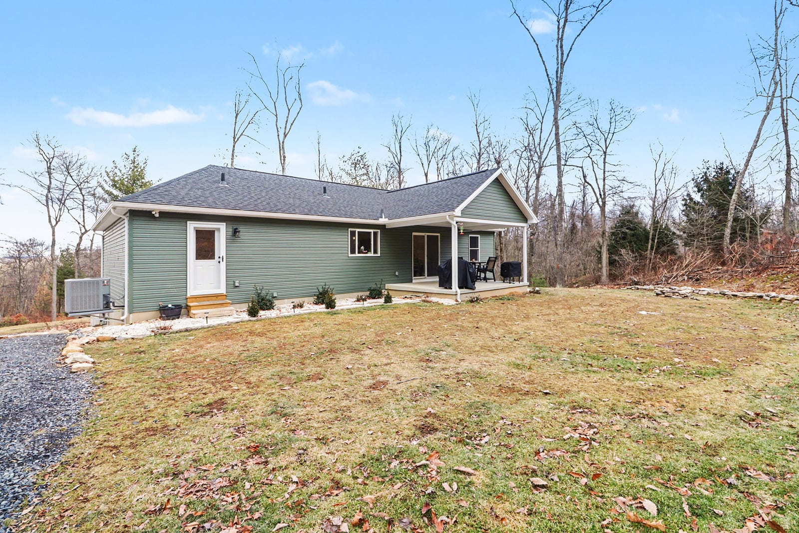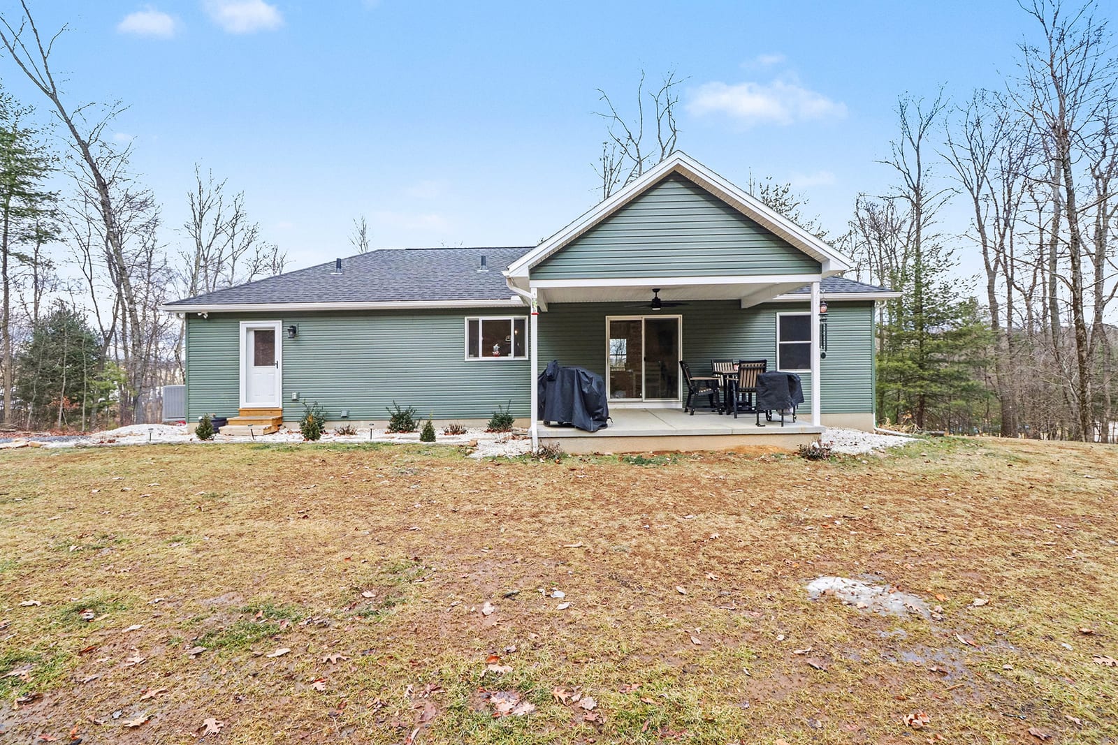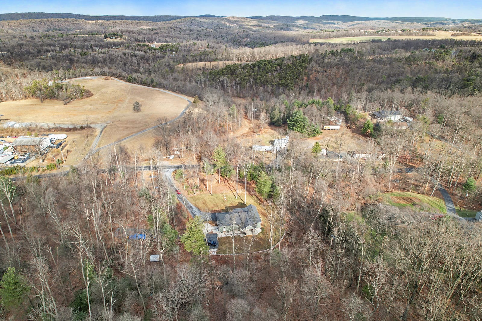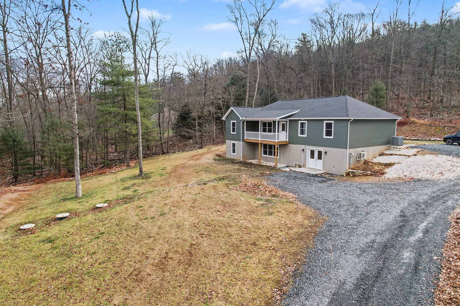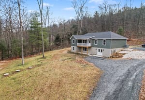 Custom-built in 2024, this thoughtfully designed property offers modern living on 10 scenic acres enrolled in Clean & Green! The main level features an open-concept layout with custom hickory cabinetry, a kitchen and dining combination, walk-in pantry, and a spacious living room. The owner’s suite includes a walk-in closet and full bath. A separate mudroom and laundry area are located on the main level for everyday convenience. The lower level is configured as a private in-law suite or apartment with its own separate entrance. This space includes a custom kitchen with hickory cabinets, dining area, living room highlighted by a three-window bay, a generously sized bedroom with a walk-in closet, and a full bath with a garden tub. A stackable washer and dryer are conveniently located within the bathroom, creating a fully self-contained living space. With a private entrance and independent layout, the in-law suite offers flexibility for multi-generational living, extended guests, or long-term and short-term rental uses. Outdoor living is enhanced by both a covered front porch with mountain views and a covered rear patio overlooking the wooded surroundings. With ample room to explore, relax, and enjoy nature, this property offers privacy, versatility, and space rarely found.