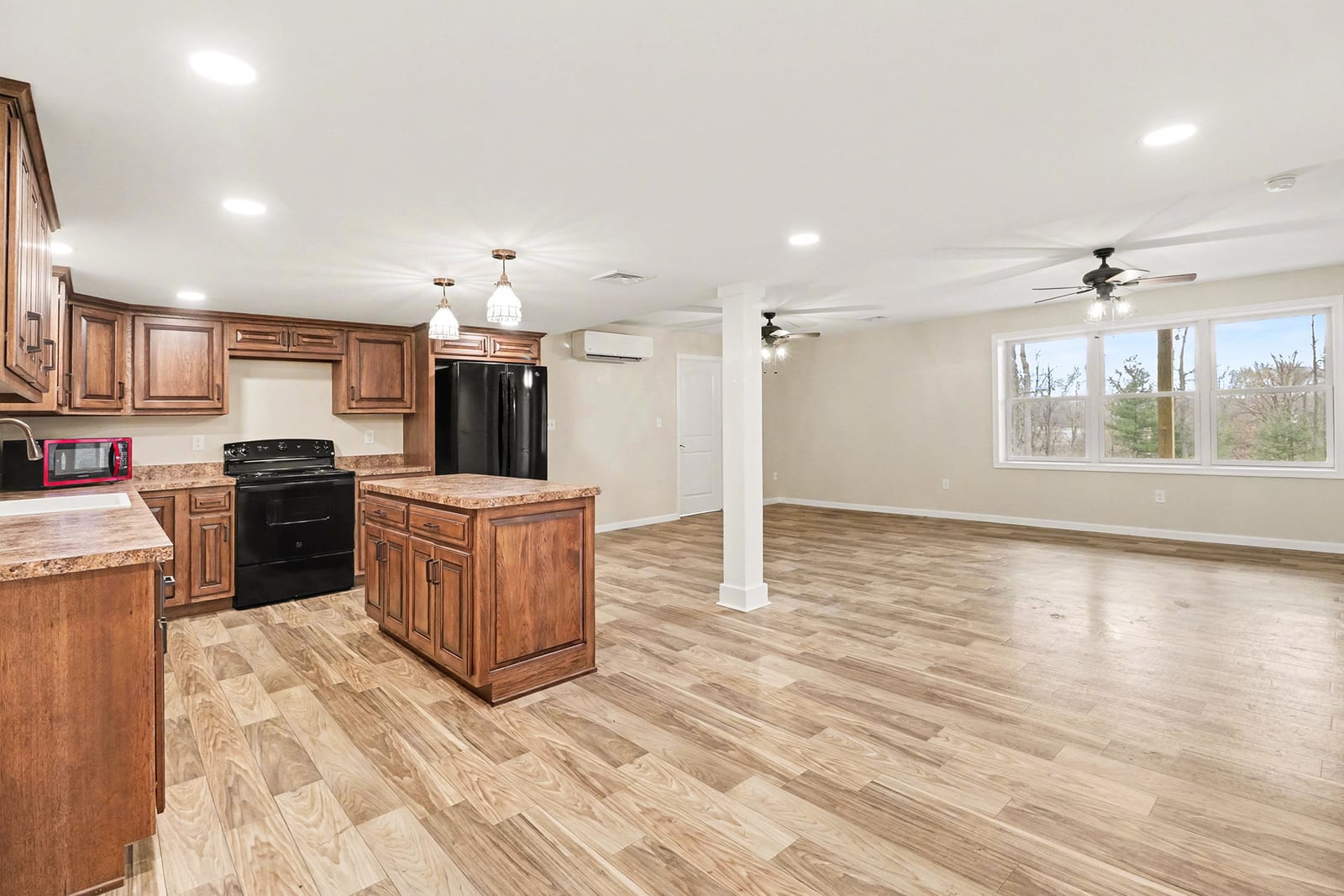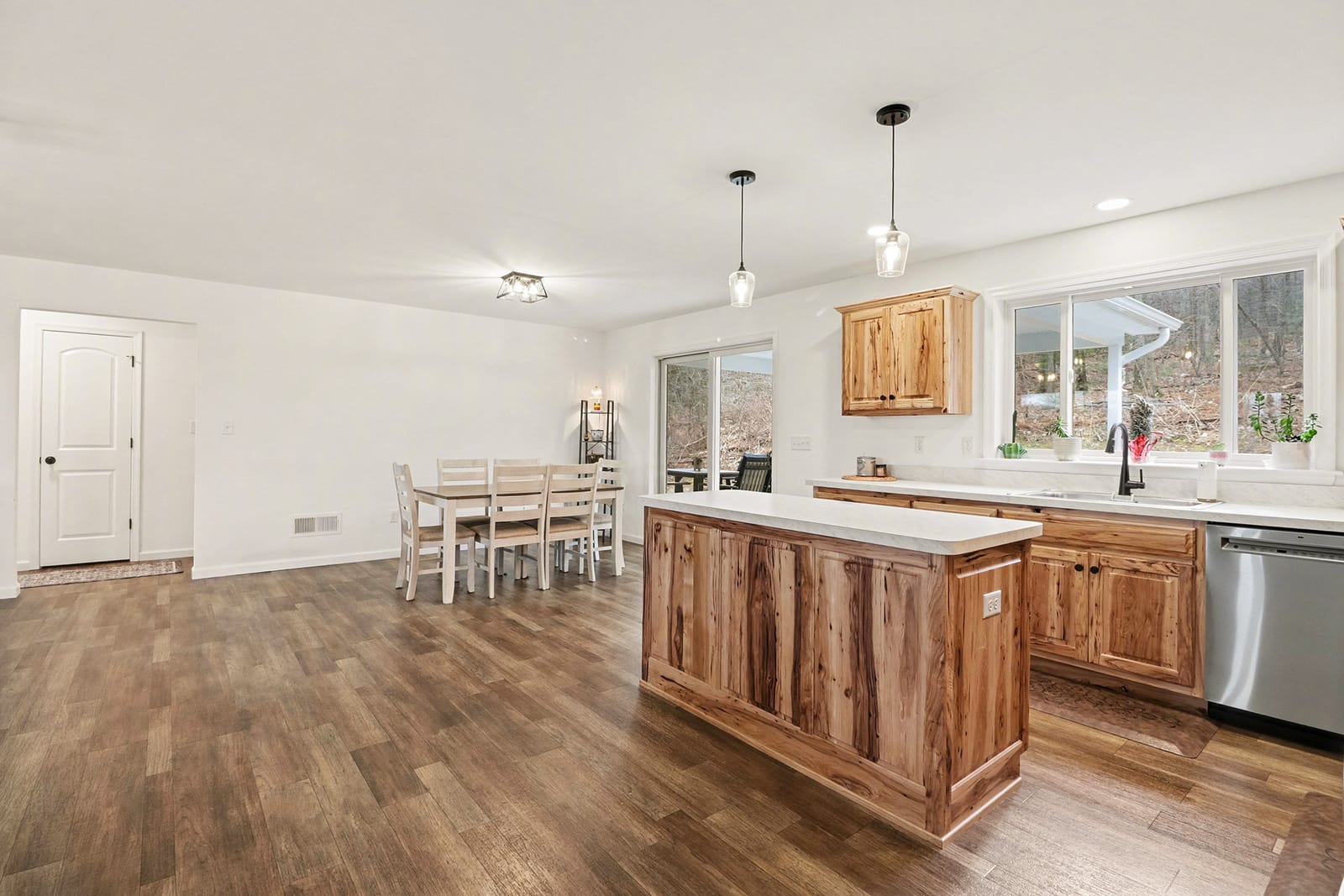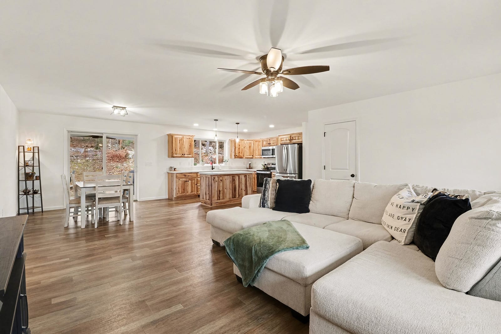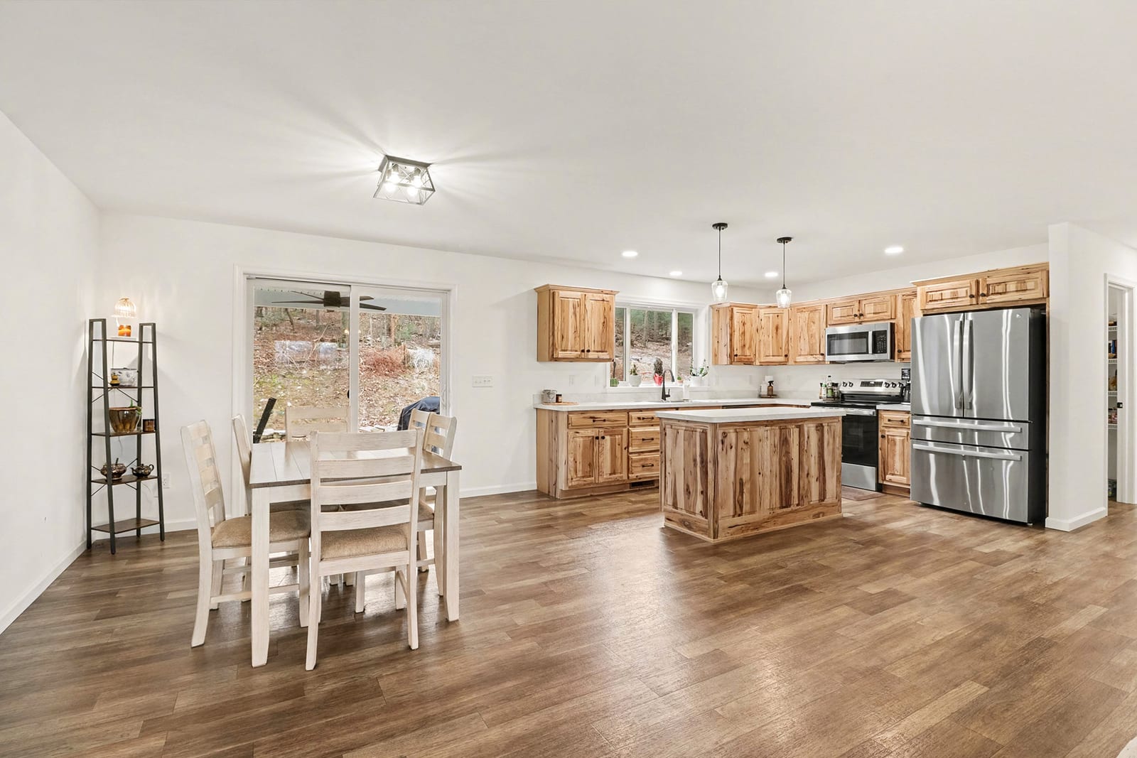 Custom-built in 2024, this thoughtfully designed property offers modern living on 10 scenic acres enrolled in Clean & Green! The main level features an open-concept layout with custom hickory cabinetry, a kitchen and dining combination, walk-in pantry, and a spacious living room. The owner’s suite includes a walk-in closet and full bath. A separate mudroom and laundry area are located on the main level for everyday convenience. The lower level is configured as a private in-law suite or apartment with its own separate entrance. This space includes a custom kitchen with hickory cabinets, dining area, living room highlighted by a three-window bay, a generously sized bedroom with a walk-in closet, and a full bath with a garden tub. A stackable washer and dryer are conveniently located within the bathroom, creating a fully self-contained living space. With a private entrance and independent layout, the in-law suite offers flexibility for multi-generational living, extended guests, or long-term and short-term rental uses. Outdoor living is enhanced by both a covered front porch with mountain views and a covered rear patio overlooking the wooded surroundings. With ample room to explore, relax, and enjoy nature, this property offers privacy, versatility, and space rarely found.