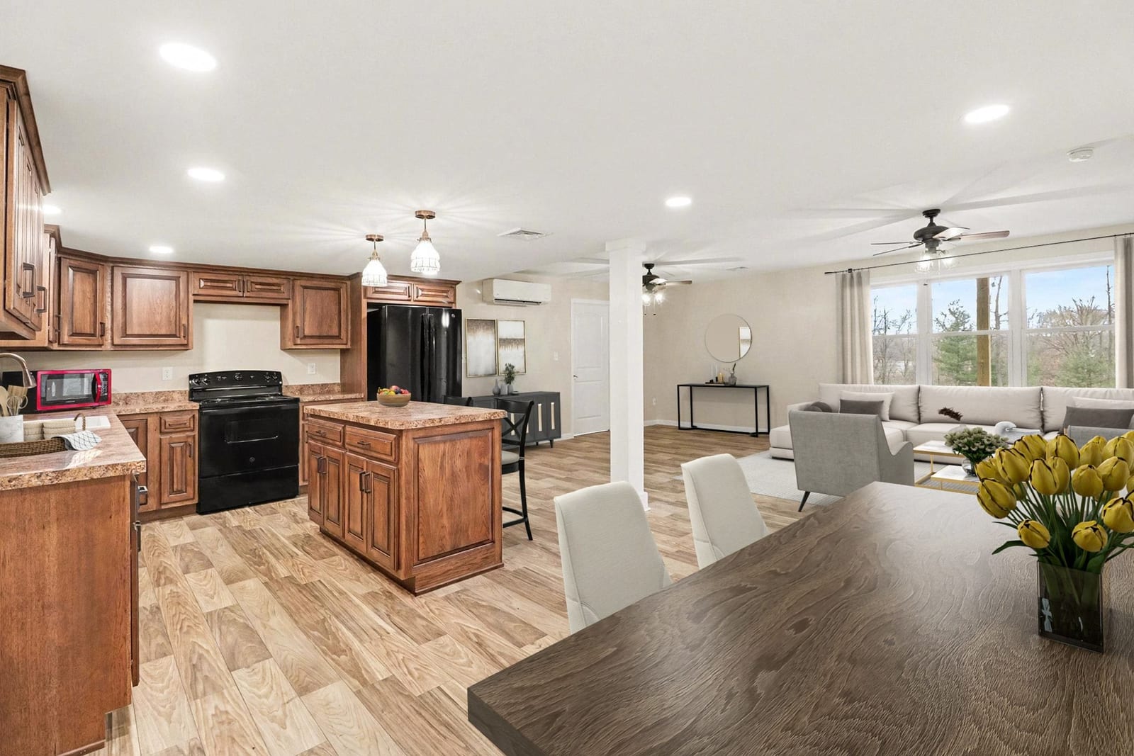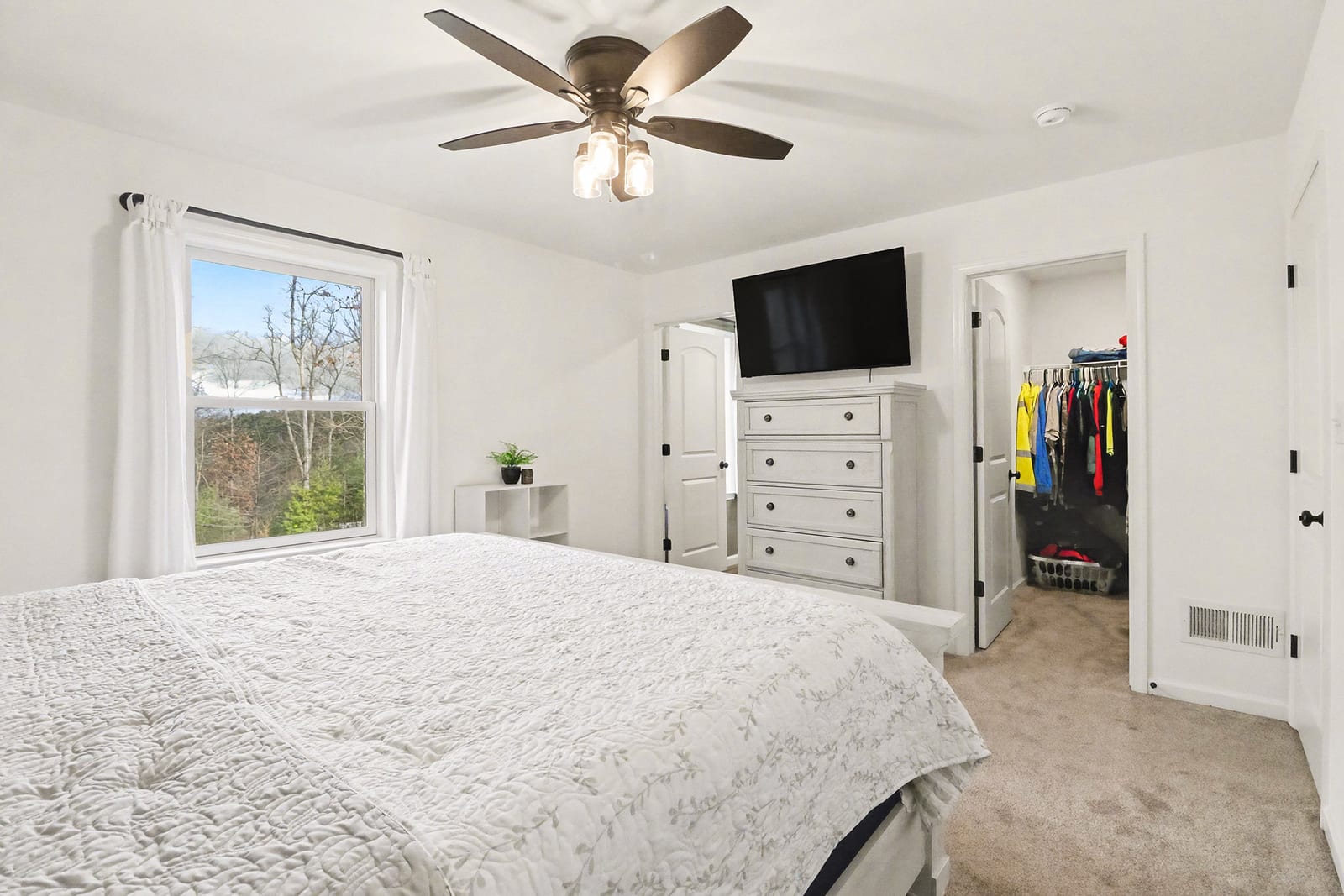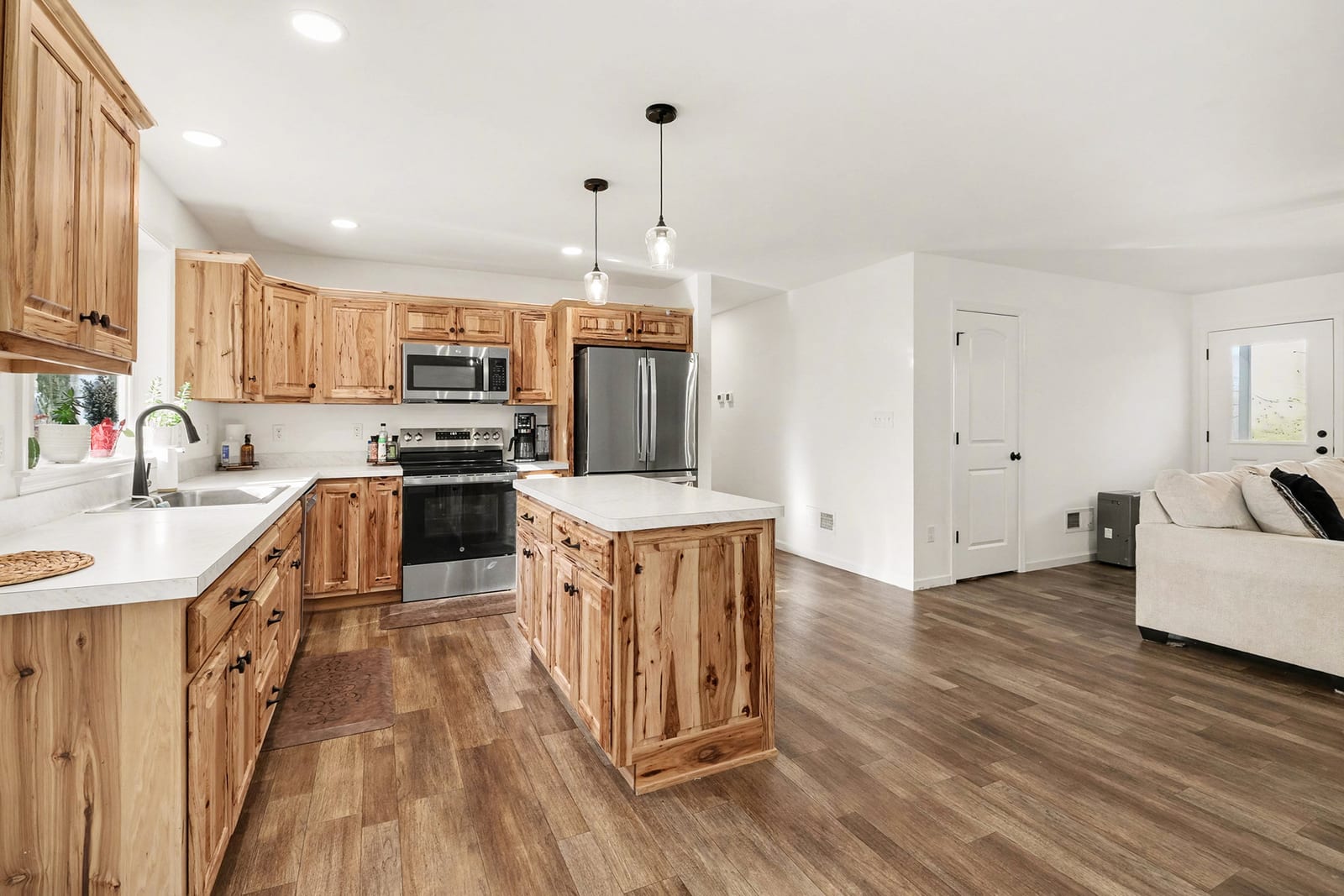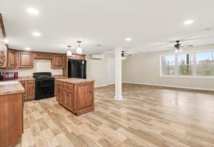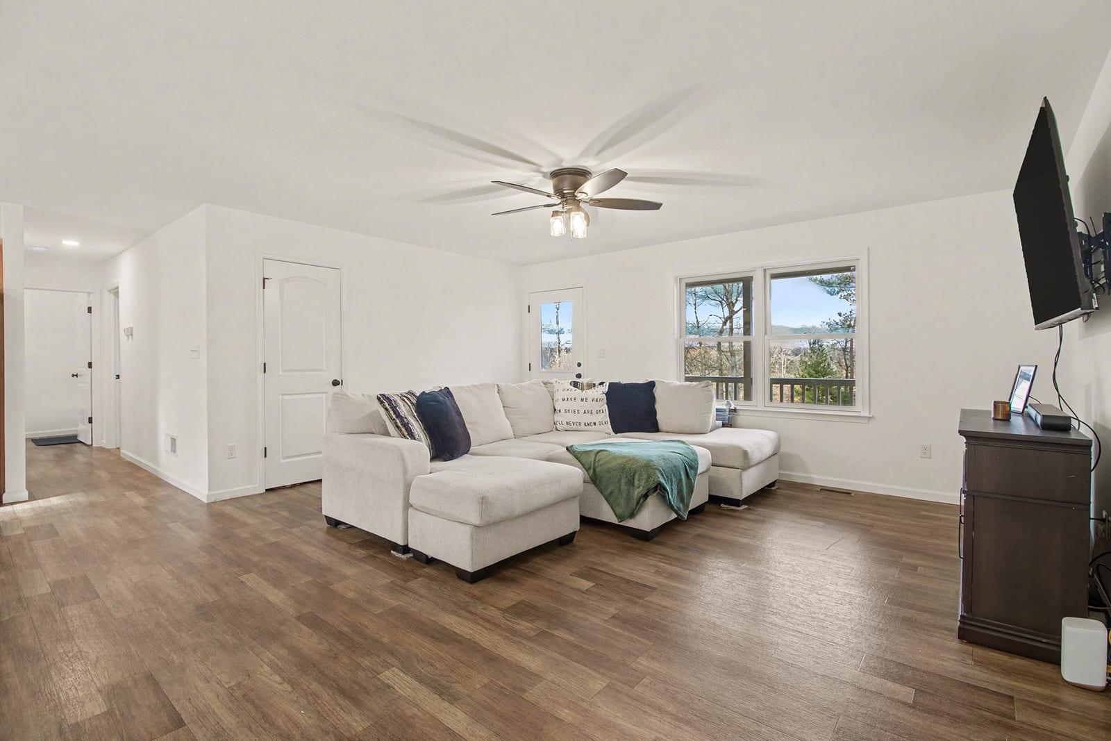 Custom-built in 2024, this thoughtfully designed property offers modern living on 10 scenic acres enrolled in Clean & Green! The main level features an open-concept layout with custom hickory cabinetry, a kitchen and dining combination, walk-in pantry, and a spacious living room. The owner’s suite includes a walk-in closet and full bath. A separate mudroom and laundry area are located on the main level for everyday convenience. The lower level is configured as a private in-law suite or apartment with its own separate entrance. This space includes a custom kitchen with hickory cabinets, dining area, living room highlighted by a three-window bay, a generously sized bedroom with a walk-in closet, and a full bath with a garden tub. A stackable washer and dryer are conveniently located within the bathroom, creating a fully self-contained living space. With a private entrance and independent layout, the in-law suite offers flexibility for multi-generational living, extended guests, or long-term and short-term rental uses. Outdoor living is enhanced by both a covered front porch with mountain views and a covered rear patio overlooking the wooded surroundings. With ample room to explore, relax, and enjoy nature, this property offers privacy, versatility, and space rarely found.