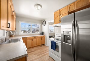 Lovely classic ranch home in the desirable Athmar Park neighborhood, perched on the largest lot in the area with beautiful Downtown Denver city views from the front porch and kitchen. This sun-soaked home features a cozy living room, dining nook, and bright kitchen, all enhanced with custom blinds and durable luxury vinyl plank (LVP) flooring. The kitchen with views of downtown Denver has stainless steel appliances, a pantry, and plenty of counter space and storage. The home offers three bedrooms and one full bathroom, including a comfortable primary bedroom with a walk-in closet and built-in shelving and a storage area with a door to the backyard. The expansive lot on alley provides incredible potential with ample space to build a 5+ car detached garage, workshop, or future expansion. The backyard is ideal for relaxing or entertaining, complete with a large covered patio, new concrete addition, concrete walkway, a great shed for storage, and newer privacy fence. Enjoy peaceful living on a quiet street while being close to neighborhood parks including Gill Park and Huston Lake Park with a new playground. Jaunt to Chain Reaction Brewery with ever-rotating food trucks for a night out. This prime Denver location offers easy access to I-25, Santa Fe Drive, Alameda Light Rail Station, South Broadway’s restaurants and nightlife, Washington Park, and Downtown Denver. Outdoor and entertainment lovers will appreciate being within walking distance to Hudson Lake Park and Levitt Pavilion Amphitheater. A rare opportunity to own a charming home on one of the largest lots in the area with city views and outstanding potential.