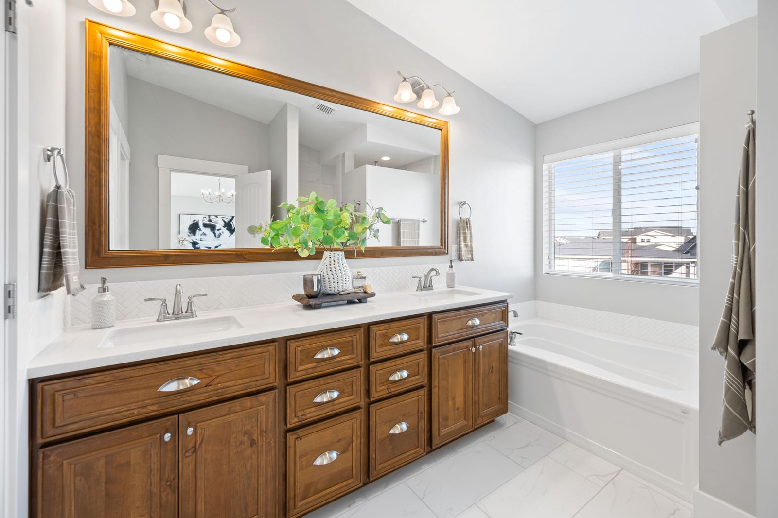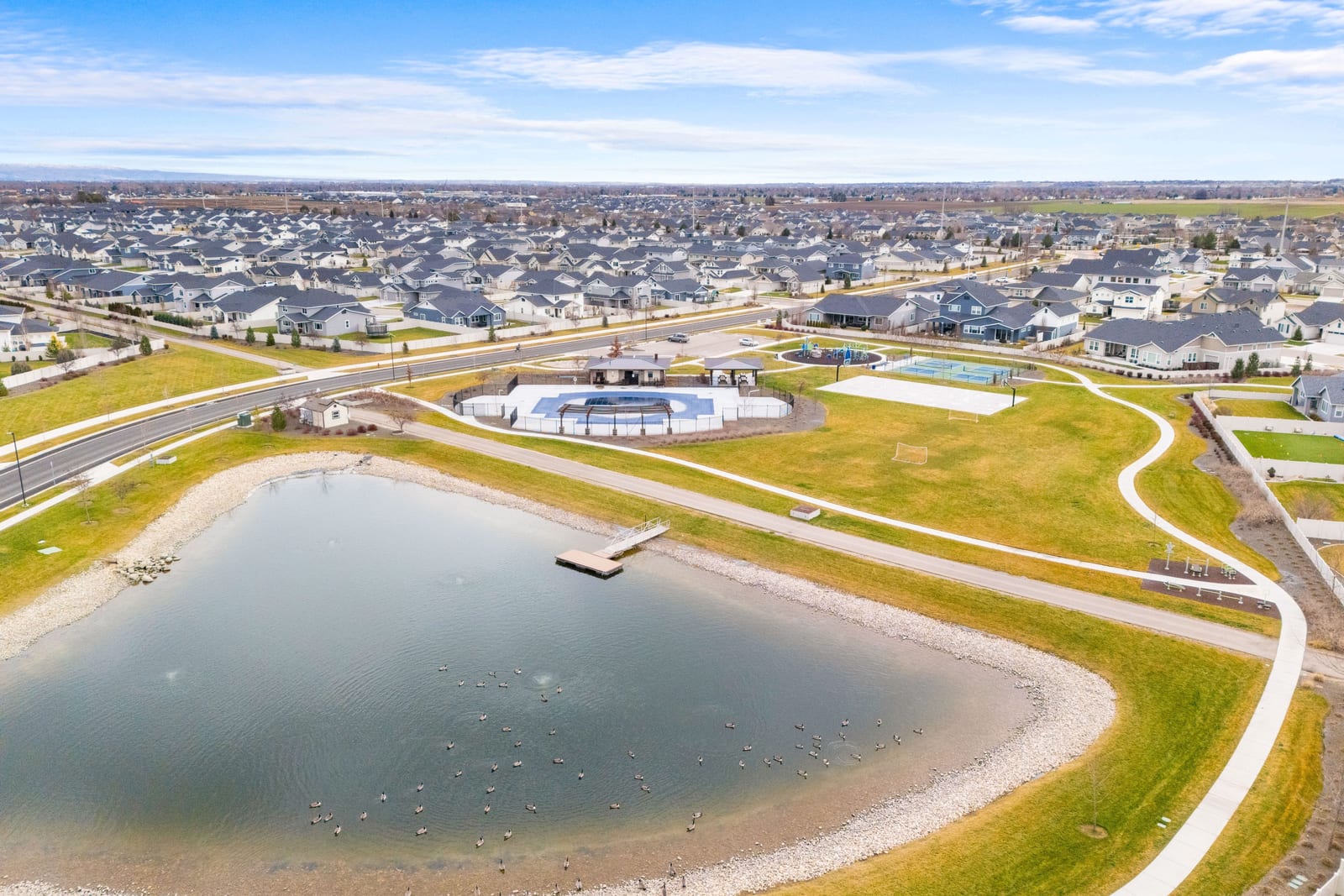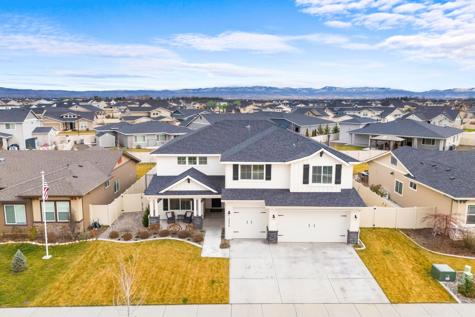 Located in highly sought-after North Meridian, this better than new two-story home offers a thoughtful layout and inviting spaces designed for everyday living and entertaining, set on a quarter-acre lot. The main level features a private, dedicated office and a light-filled living room with dramatic two-story ceilings, while a charming dining area with open niches flows seamlessly into the cozy great room with a fireplace and the beautifully appointed kitchen beyond. Designed with both function and style in mind, the kitchen features slab granite counters, double ovens, a sizable pantry, center island, and breakfast bar—ideal for casual dining or gathering with friends. Upstairs, the spacious primary suite provides a relaxing retreat with a walk-in closet and an ensuite bath featuring dual vanities, a soaker tub, and a tiled walk-in shower. Three additional bedrooms, another full bathroom, a conveniently located upstairs laundry area, and an enormous bonus room provide exceptional flexibility for a variety of lifestyles. Outdoors, a covered back patio with additional shades creates a comfortable space for year around living, while an oversized three-car garage and a storage shed add exceptional functionality. Residents of The Oaks North community enjoy expansive open spaces, playground equipment, sports courts, and inviting community pools that complete the neighborhood lifestyle.