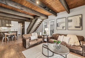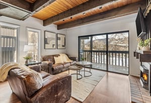 Open your door to the calming sounds of Red Sandstone's flowing creek and scenic views of both Vail Mountain and the Gore Range, enhanced by the privacy and natural light of this end unit. This inviting 2-bedroom residence in Brooktree offers a thoughtfully designed floor plan that balances comfort and functionality, featuring light-filled living spaces that encourage relaxation after a day in the mountains. Enjoy morning coffee on your private deck overlooking the creek below, unwind beside a warm fireplace or dine in and savor quiet evenings at home—an authentic expression of the classic Vail lifestyle.