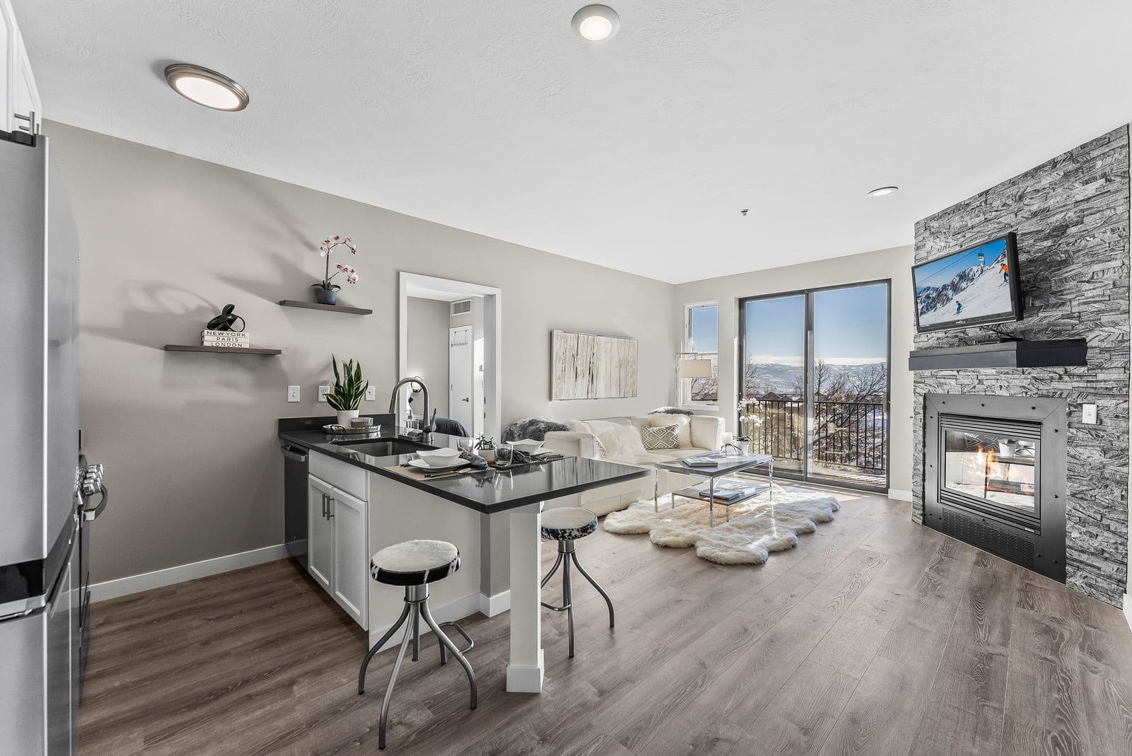 Newly remodeled two-bedroom, three-bathroom condo featuring a full kitchen and an open, light-filled living space. Relax on your private deck with views toward the Deer Valley slopes. The residence includes additional personal storage and a dedicated gear locker located just outside the unit for easy, everyday access. This remodeled residence is located within the existing Mason buildings (formerly The Lodge at Stillwater), offering buyers the opportunity to enjoy updated interiors while benefiting from the broader resort reimagination underway at The Mason. Formerly known as The Lodge at Stillwater, The Mason is undergoing a comprehensive transformation and rebrand, introducing elevated design, modern finishes, and a refined mountain aesthetic across the resort. Planned on-site food and beverage offerings, including a future restaurant and bar, are anticipated as part of The Mason's ongoing reimagining. Ideally situated on the shores of the Jordanelle Reservoir and directly across the street from Deer Valley East Village, The Mason provides exceptional access to world-class skiing, year-round recreation, and everything Park City has to offer. From hiking and biking trails to golf, boating, fly fishing on the Provo River, and Park City's iconic Main Street, this location delivers true four-season living. Current shared amenities available to owners and guests include a large outdoor heated swimming pool, multiple year-round hot tubs, a fitness center, game room, laundry facilities, bike storage, and a year-round onsite outfitter. Additional shared enhancements are anticipated as part of the resort's ongoing transformation. With its unbeatable location, evolving amenities, and modern mountain appeal, The Mason continues to set a new standard for condominium living in the Jordanelle and Deer Valley corridor. Adventure begins the moment you arrive.