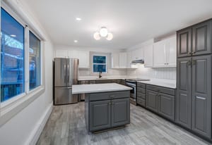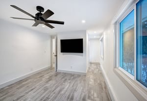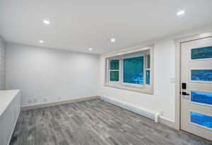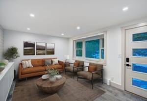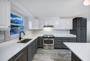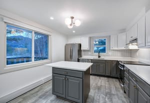 The home has been thoughtfully renovated with new bathrooms, an upgraded kitchen, fresh interior paint, new flooring, and updated trim and doors, creating a move-in-ready interior. A main-level primary bedroom adds everyday convenience and includes a spacious primary closet.