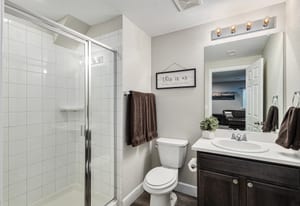 The master suite offers a comfortablel retreat with its own ensuite bathroom and a spacious walk-in closet. Two additional bedrooms and bathrooms provide ample space for families or guests.