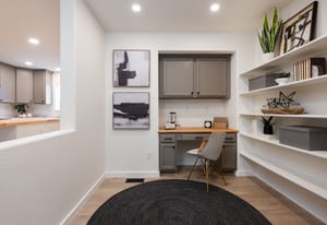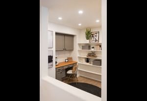 entertaining. A bonus office space provides the ideal setup for working from home. Upstairs, you’ll find three generously