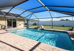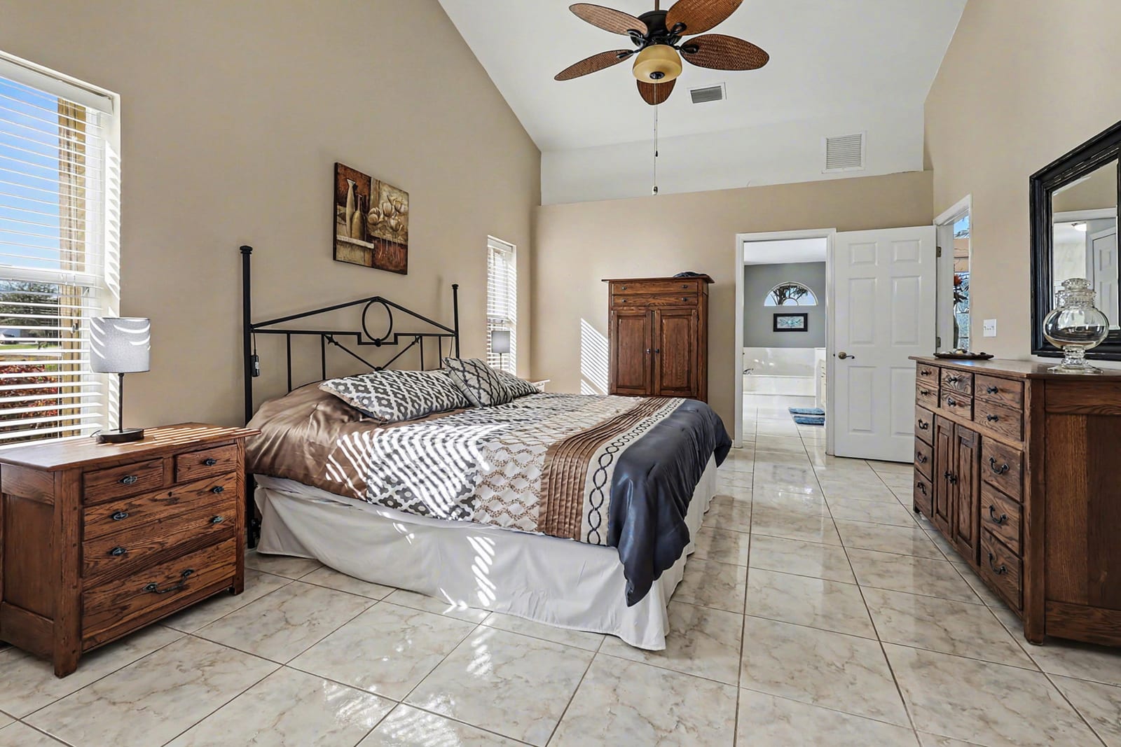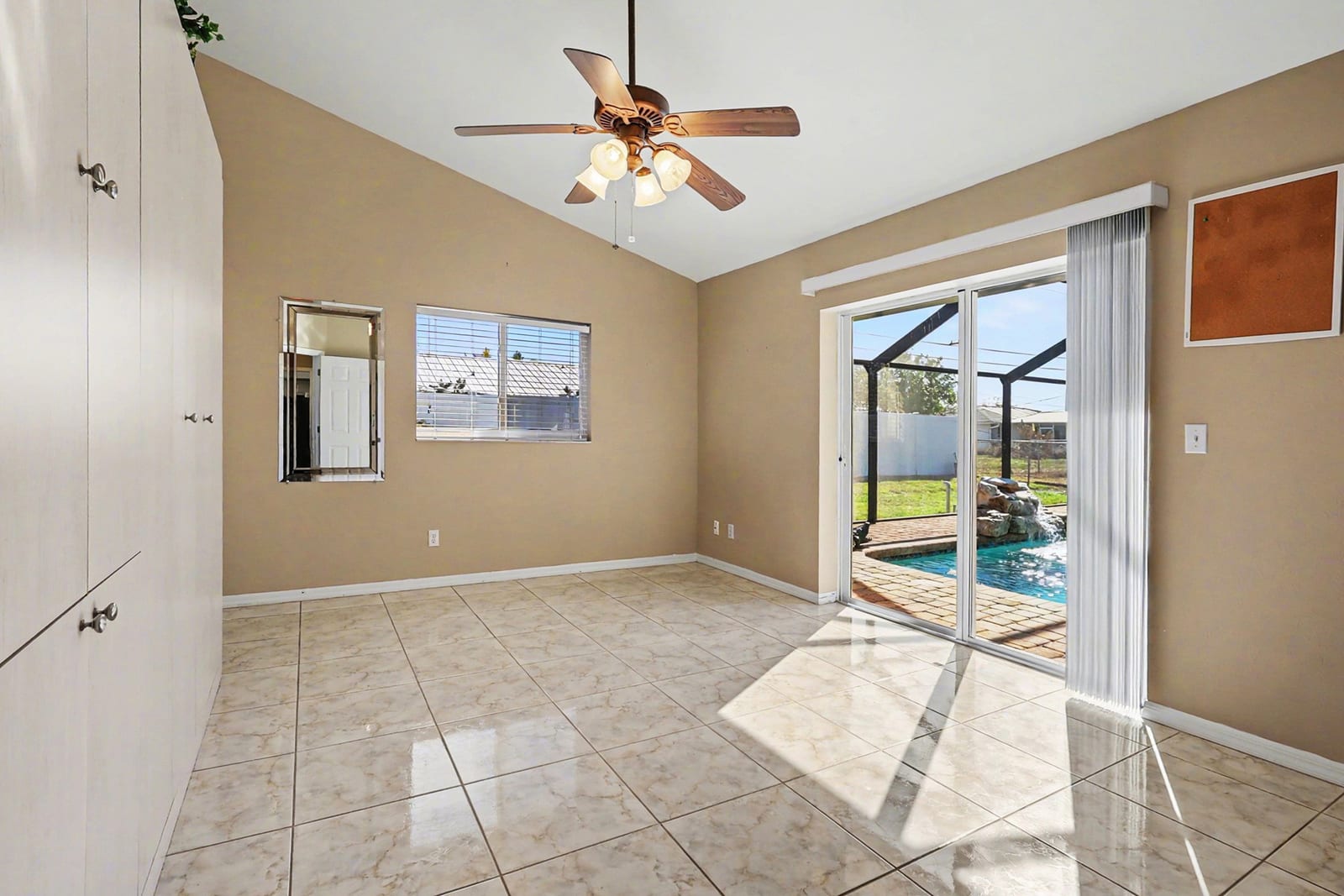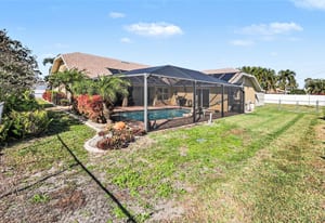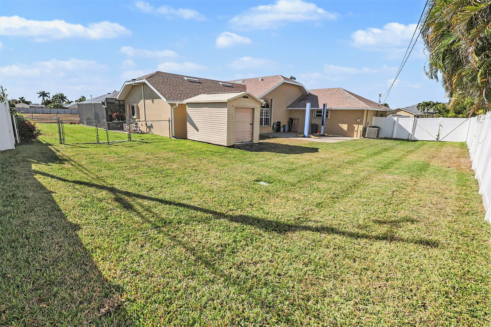 Turnkey Pool Home on Triple Lot – Perfect for Florida Living & Car Enthusiasts! Beautifully maintained, light-filled pool home featuring an open floor plan with office, plantation shutters in the great room, and a convenient pool bath. The spacious kitchen offers abundant cabinetry, large island, eat-in area, step-in pantry, and GE Profile stainless steel appliances. Enjoy outdoor living with a solar-heated pool, fenced backyard, and storage shed. This property sits on a triple lot with assessments paid in full. Flood zone X500. The triple lot next door MLS# 2026001195 is also available with assessments paid. Car lovers will appreciate the huge 4-car garage and car lift. Added features include new roof 2022, accordion storm shutters and manual roll down shutters, whole-house Kinetico water softener, large utility room, and exceptional maintenance throughout. A rare opportunity to own a home designed for the Florida lifestyle! Schedule a tour today.