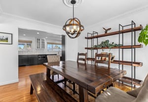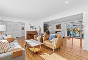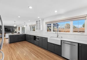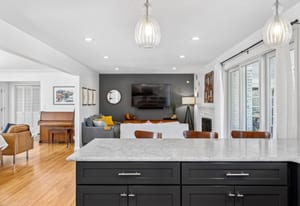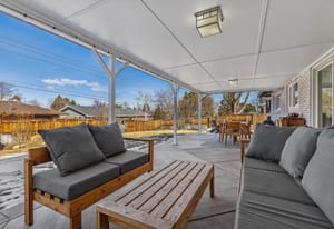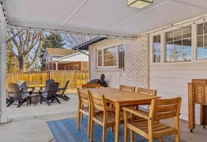 Situated within the prestigious Cherry Point enclave, 3743 S Hudson Street presents a rare opportunity to experience mid-century architecture redefined for contemporary luxury. This brick ranch-style residence is perfectly positioned on a generous lot, offering a lifestyle of convenience with convenient access to the Highline Canal, light rail, and the boutique offerings of the Happy Canyon shopping center. The heart of the home is a chef-inspired kitchen, boasting an expansive marble-topped peninsula, sleek dark-blue cabinetry, and a deep farmhouse sink, all set against a classic subway tile backsplash and warm hardwood floors. The culinary space flows effortlessly into a formal dining room anchored by a striking geometric chandelier and an expansive window, creating an ideal setting for curated gatherings. Practicality meets style in the main-level laundry suite, a bright, spacious area featuring premium Samsung appliances, ample cabinetry, a powder room, and direct access to the outdoors and the garage. The primary suite and family room also offer seamless entry to a private, fully fenced backyard sanctuary—an entertainer’s dream with a covered patio and built-in fire pit. The lower level provides a sophisticated extension of the home, featuring a spacious recreation area, two conforming bedrooms, an updated three-quarter bath, and a new high-efficiency boiler and water heater. Whether enjoying a quiet evening by the fire or a short jaunt to Downtown Denver, this home offers an unparalleled balance of suburban tranquility and urban accessibility.
