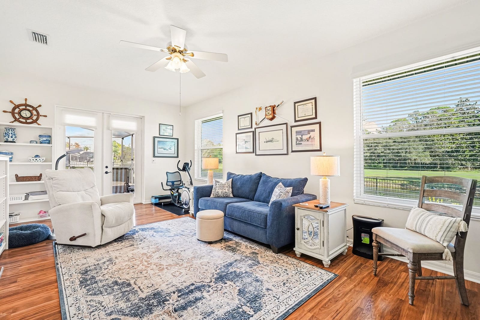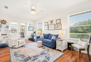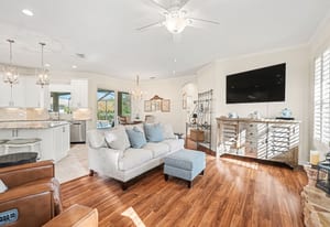Outdoor living is exceptional with a custom solar-heated saltwater pool and spa, screened lanai, upgraded decking, covered seating area, and wrought iron fencing designed to showcase the fairway setting. Nearly every main living area and bedroom provides pool access and scenic views.