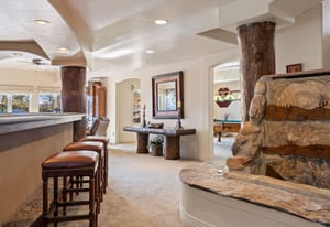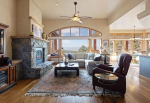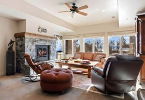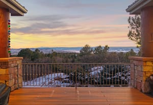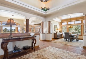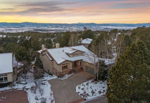 Rare, awe-inspiring mountain views majestically unfold across the horizon and command your full attention at this luxury 3 bedroom | 4 bathroom residence. Tucked within a private enclave of the gated Village at Castle Pines community, this home sits adjacent to the exclusive Castle Pines Golf Club, host of the 2024 BMW Championship, and offers rare proximity to this revered course. As you enter the lodge-inspired foyer, floor-to-ceiling windows provide a sweeping panorama. Just off the entry, an executive office with rich wood detailing and glass-faced doors presents a refined workspace, while the formal dining room is perfect for gathering family and friends alike. Continuing on through the main level, the great room anchors the home with soaring ceilings and a window wall that frames breathtaking, wide-open mountain views, complemented by a stone fireplace. A sun-filled breakfast nook opens to a large deck, perfect for wildlife viewing over morning coffee and sunset dinner parties, and sits adjacent to the recently remodeled kitchen with Viking appliances and granite counters. A convenient main level primary suite offers more stunning mountain vistas, separate outdoor access, and a setting designed to capture the surrounding landscape. The renovated primary bath has quartz counters, LED-lit mirrors, a soaking tub, and a walk-in glass shower with custom tilework, while a functional laundry room and stylish powder room complete the main level. Downstairs, the walkout lower level features a custom wet bar, family room with a stone fireplace, game room, two en suite guest bedrooms with walk-in closets, and a flexible den - perfect for a gym or study. Conveniently located only 2 minutes to Gate 1, these homes seldomly come onto the market due to their quiet, coveted location, lock and leave nature, and spectacular vistas. Delivering architectural character, thoughtful updates, and one in 1,000,000 views at every turn, this mountain retreat is truly one of a kind.