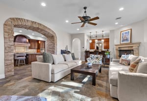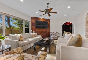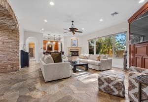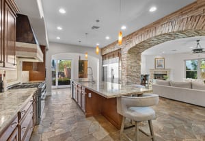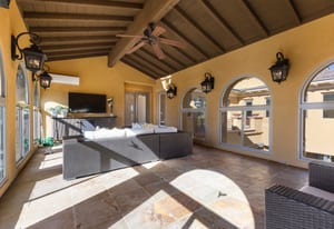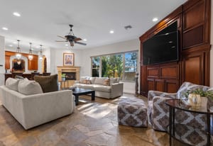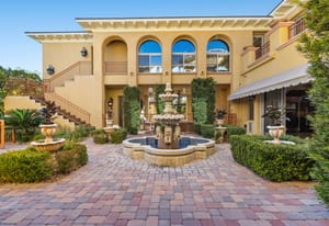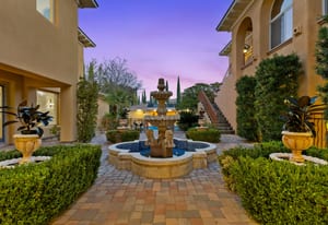 Located within the guard-gated Belacere, 10225 Stony Ridge is a Mediterranean-inspired private compound spanning 2 expansive lots, thoughtfully designed around a breathtaking central courtyard that anchors the home & defines its seamless indoor-outdoor flow. The main residence offers an expansive yet intimate floorplan feat. a gourmet kitchen, home office, theatre & elegant bar & wine cellar. The primary suite serves as a tranquil retreat with a private enclosed deck. Lavish slate, travertine & stone finishes elevate the home’s timeless architectural appeal. Outdoors, the estate unfolds into a true resort setting with pool & spa, putting green, outdoor BBQ, ideal for both entertaining & everyday enjoyment. 2 private guest suite casitas (300 sqft each) & expansive pool house (1,394 sqft), complete with pocketing sliders, kitchen, living, bed, bath & laundry, providing exceptional flexibility. This home is complete with a 4 car garage & gated motor court.
