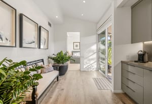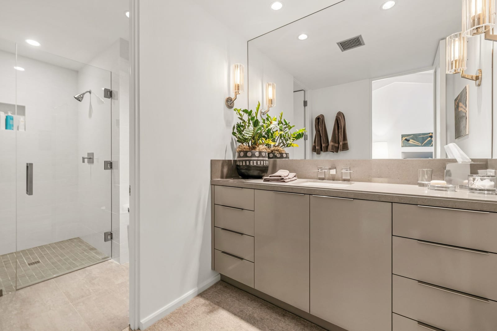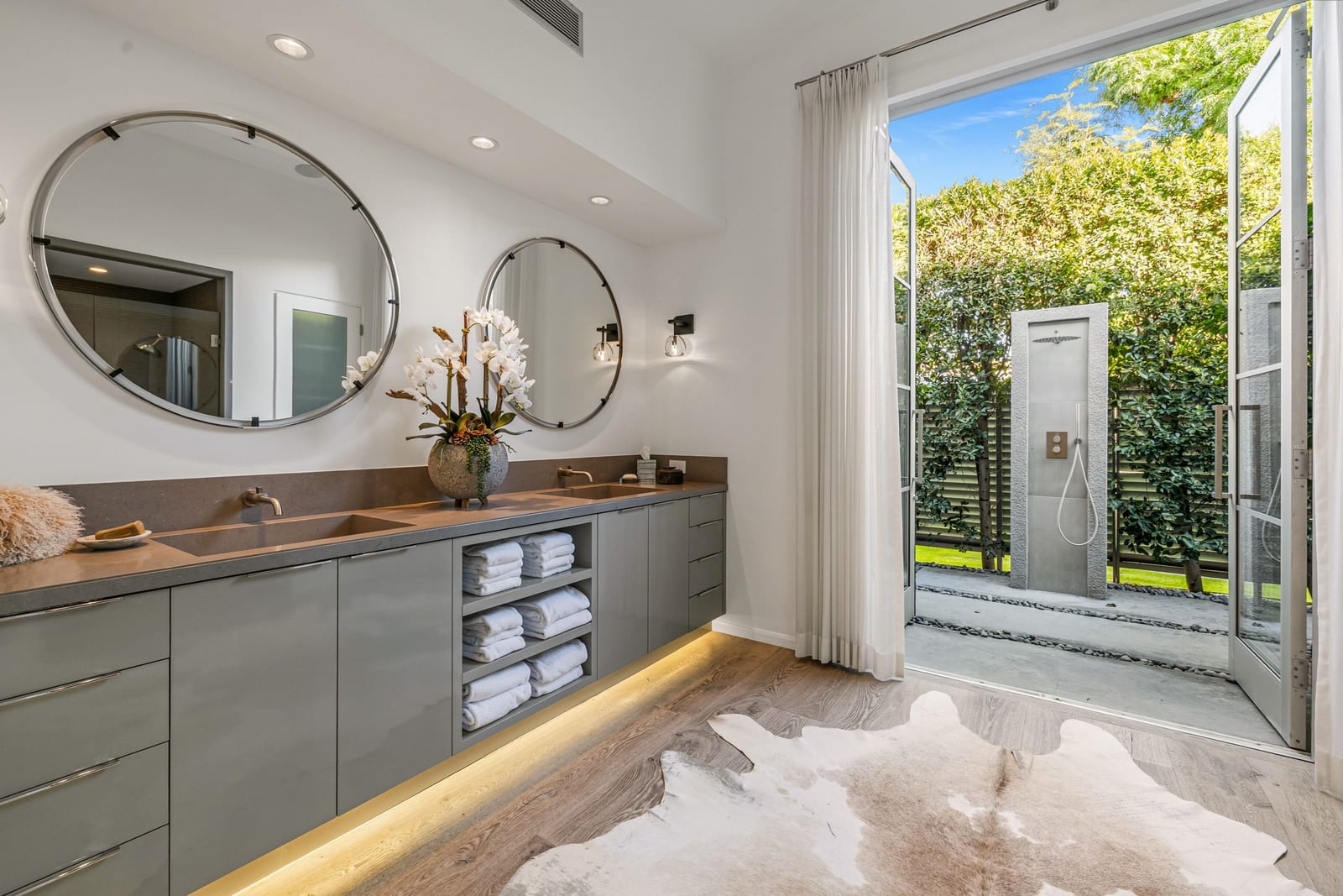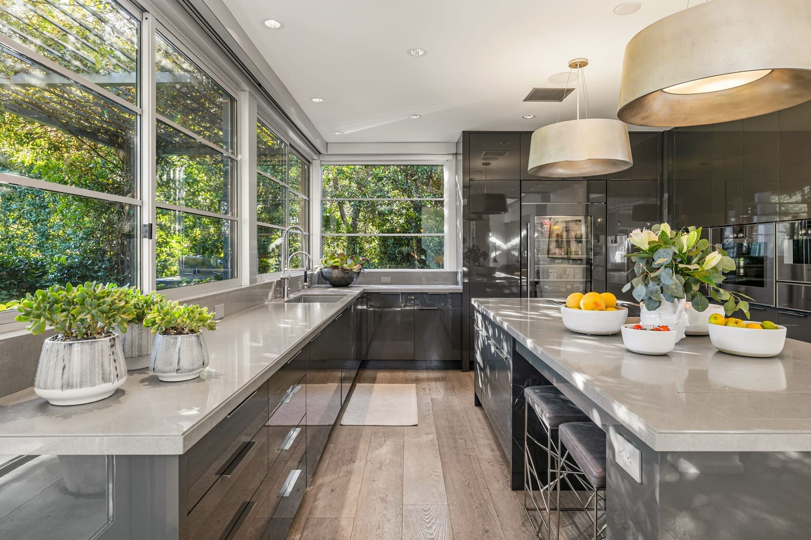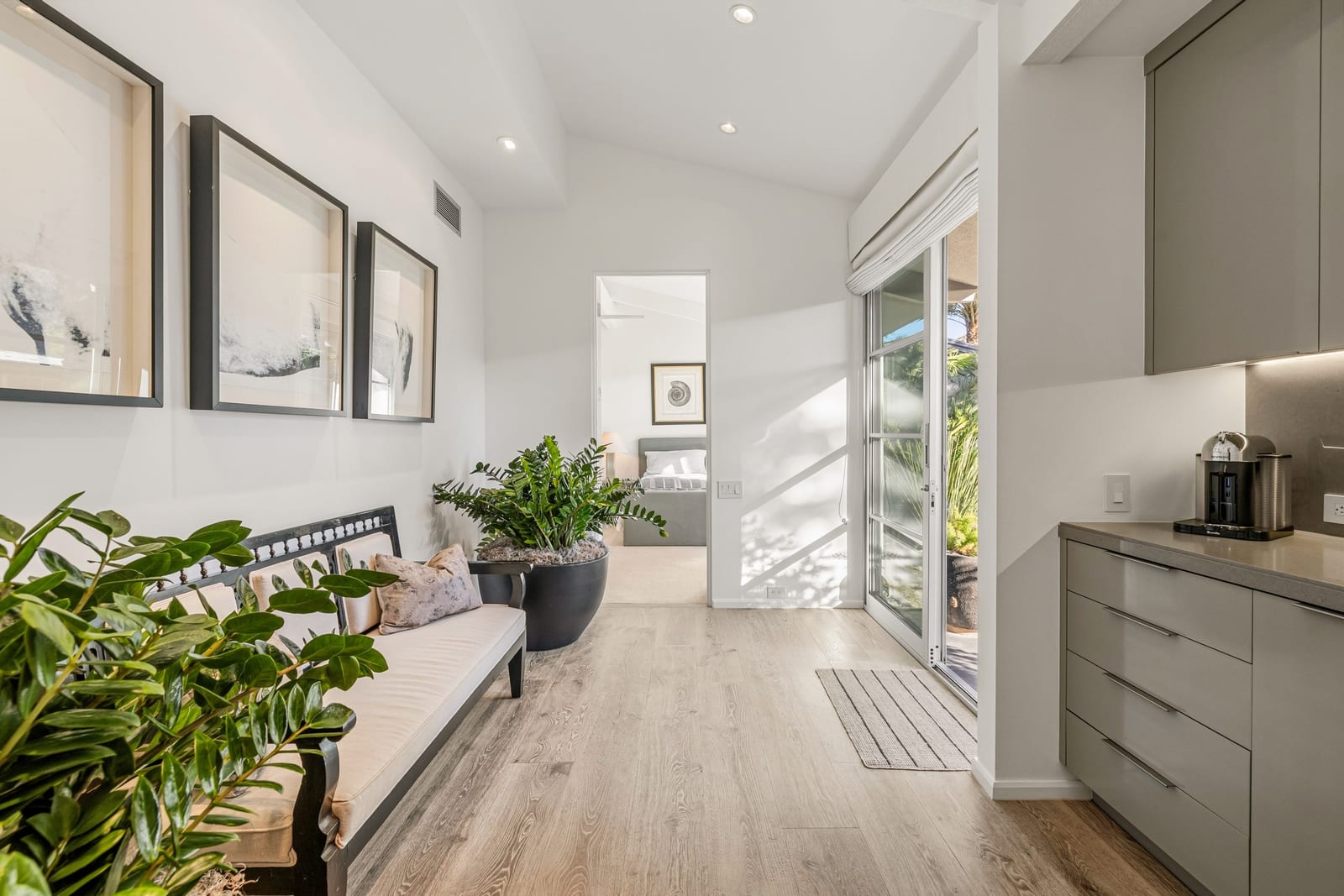 Premier south-facing 13th fairway location within the gates of Eldorado Country Club. This sensational property captures dramatic views of Mt. Eisenhower and a high level of seclusion. A gated entry, at the end of a quiet cul-de-sac, leads to immaculately landscaped grounds curated for both privacy and outdoor enjoyment. Remodeled down to the studs in 2018, the home presents striking contemporary architecture with clean lines, a neutral palette, and walls of glass that frame the impressive mountain backdrop. The great room showcases soaring vaulted ceilings, an elongated skylight, and a wood-burning fireplace, creating an open, light-filled living environment. A glass-enclosed office is positioned adjacent to the great room. Outdoor living areas are intentionally planned and include a courtyard pool patio with four fire bowls flanking the central walkway between the pool and a fountain reflection pool. The fairway patio is perimeter landscaped for privacy and highlights expansive views and a generous circular fire pit—ideal for entertaining or enjoying cool desert evenings. The gourmet kitchen is appointed with a center island, oversized walk-in pantry, and a sit-down bar counter adjacent to the formal dining area. The primary suite with fireplace features a dedicated office retreat, dual closets, and a spa-inspired bath opening to an outdoor shower. A gym, with bath, can easily be converted to a bedroom suite. The well-appointed guest house with kitchenette includes two spacious ensuite bedrooms, each with a sitting area. A pool cabana with living space, laundry room, and bathroom can also function as a private casita. This extraordinary residence brings together modern architectural design, privacy, and a prime fairway setting in one of Eldorado's most desirable locations.