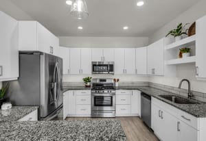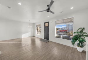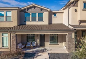 Like-new townhome blending custom design with comfortable living. Enjoy a light-filled kitchen with quartz countertops throughout and under-cabinet lighting, a spacious primary en suite, custom-tiled baths, and a bonus versatile upstairs living space. The East-facing covered patio offers year-round enjoyment, complemented by Red Mountain views and star-filled night skies, with easy access to scenic trails, parks, schools, and everyday conveniences.