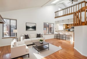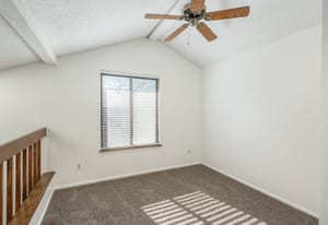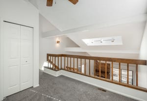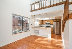 RARE END-UNIT- Freshly painted, light-filled townhome in the highly sought-after Beaumont Place! Soaring ceilings and an abundance of natural light welcome you into a modern, open-concept layout with hardwood flooring and new carpet that flows seamlessly throughout the main living areas. The kitchen features stainless steel appliances, plenty of cabinetry and a peninsula with plenty of room for seating. A main-floor bedroom offers flexible space for guests or a home office, complete with a generous closet and direct access to a full bathroom—ideal for visitors or remote work setups. Upstairs, the expansive primary suite is your private retreat. Enjoy a full bathroom with a large vanity, tiled shower, and plenty of natural light. A versatile loft space adds even more potential—use it as a cozy reading nook, a home gym, or easily enclose it to create an additional bedroom. The basement includes laundry space, is unfinished and ready for your imagination! eStep outside to your private patio—perfect for morning coffee or relaxing evenings. With a thoughtful layout and a prime location, this beautiful end unit truly checks all the boxes. Welcome home.