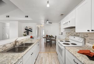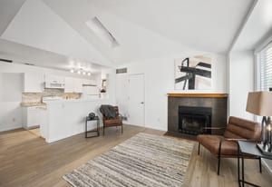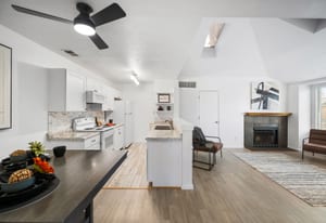 Welcome to this beautifully updated 2-bedroom, 1-bathroom upper-level condo in the popular Creekside community of Arvada. This light-filled end unit features newer luxury vinyl plank flooring throughout and a cozy wood-burning fireplace, creating a warm and welcoming atmosphere. The kitchen offers white appliances and plenty of cabinet space, flowing easily into the dining and living areas. The spacious primary bedroom and second bedroom, perfect for guests or a home office, make great use of the well-designed layout. Enjoy in-unit laundry, all appliances included, and the convenience of garage below with a newer door. With easy access to Standley Lake, local parks, and scenic trails, plus close proximity to shopping, dining, and the charm of Old Town Arvada, this lovingly updated home is ready to welcome you.