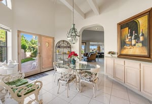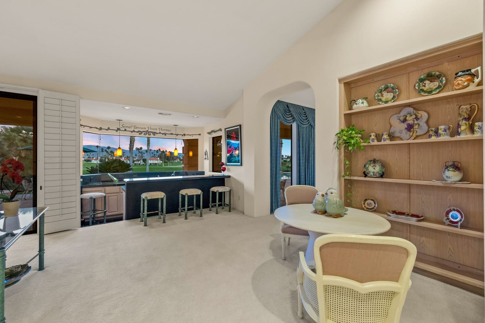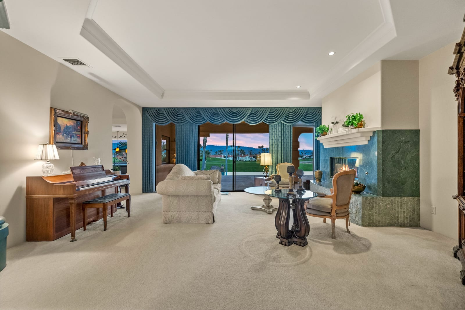 Step through the grand entry into a home that flows seamlessly between formal and casual spaces, all showcasing breathtaking golf course, mountain, and pool/spa views. Enjoy true indoor-outdoor living with multiple access points to the covered patio.