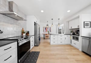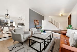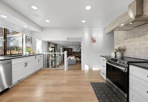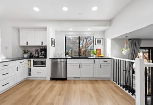 **OPEN HOUSE - Saturday the 17th 12:00 - 2:00 PM** A striking entry and continuous luxury waterproof laminate flooring set the tone for this thoughtfully updated split-level home, creating a seamless, open feel across the main, lower, and upper levels. Fresh interior and exterior paint provide a crisp, modern backdrop, while the raised landing accented by black tile makes an immediate and memorable first impression. The main living room is anchored by a large bay window, filling the space with natural light and flowing naturally into the dining room, where a second bay window frames backyard views. The adjacent kitchen has been updated with new cabinetry, premium quartz countertops, and a full suite of stainless steel appliances, including an induction range. A breakfast bar and tiled accent wall with stainless hood complete the space with both style and function. Just a few steps down, the family room offers a welcoming gathering space centered around a wood-burning fireplace and direct access to the fenced backyard. This level also includes a versatile bonus room with an adjoining half bath—ideal for guests, a home office, or flexible living needs.