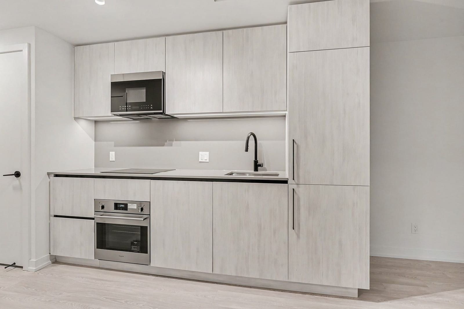 The main floor offers concierge service, a welcoming lobby lounge with a fireplace, an automated parcel system, a bike repair station, and a pet spa.