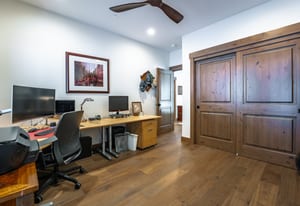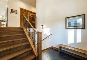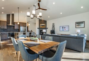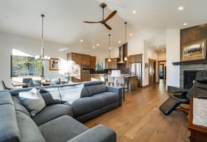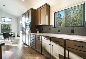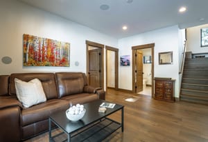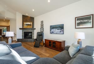 This thoughtfully designed home offers refined mountain living with a focus on comfort, quality, and low-maintenance durability. Set to capture an unobstructed view of Hawks Peak, the home also benefits from a southwest-facing orientation, bringing abundant natural light into the great room and contributing to improved snow melt on the driveway during winter months. Inside, hardwood flooring and tile run throughout the home, complemented by custom-finished alder interior doors, trim, and baseboards. Anderson fiberglass low-E windows and tall ceilings (10’ upstairs and 9’ downstairs) create an open, airy feel while maintaining a warm alpine aesthetic.