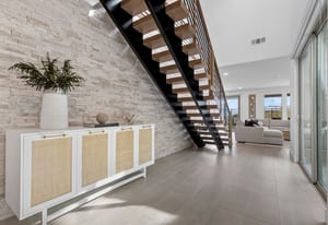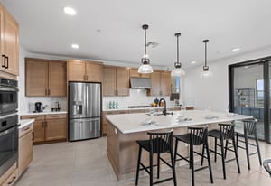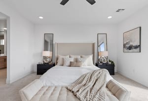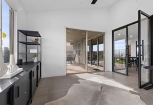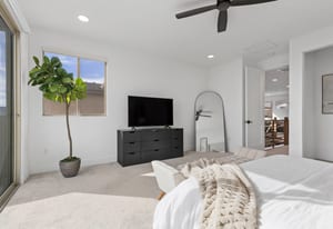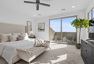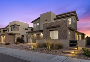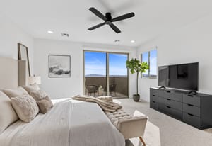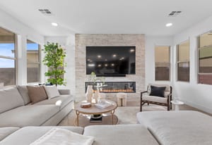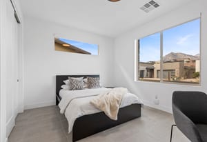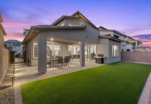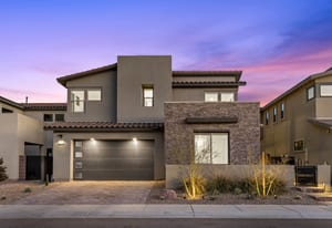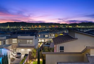 A modern luxury home in the highly desirable gated community of Summerlin West. Built in 2022, this 4-bedroom (1 down), 3.5-bath residence offers 3,076 sq ft on a 5,663 sq ft lot with a spacious loft, glass enclosed office, and 3-car garage. Enjoy unobstructed Las Vegas Strip views from the upstairs primary bedroom balcony, along with beautiful mountain views that create a stunning backdrop day and night. Ideally located within walking distance to multiple parks and zoned for top-rated schools. This home features 12” x 24” tile flooring, 3-panel sliding doors, and a stunning floating staircase. Over $160,000 in designer upgrades including a 78” linear fireplace, floor-to-ceiling stacked stone surround and feature walls, custom roller shades, upgraded lighting throughout, epoxy-finished garage with Tesla EV charger, water softener system, and a professionally landscaped desert-modern backyard with pavers and turf. An exceptional opportunity combining luxury design and stunning views.