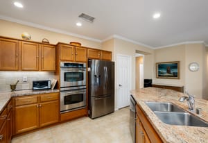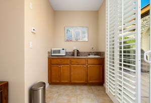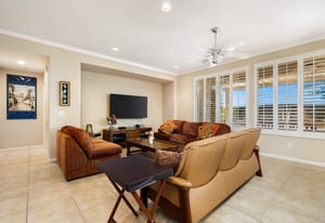 The Monterey model with 1,965 SQ FT, 3-BD, 3-BA, den and private courtyard with detached Casita, is among the most favored of Trilogy homes, and, this one with a firepit, water feature, and Chocolate Mountain views is a winner. And, the home is within walking distance to the Trilogy Clubhouse, pools, and sports complex. Guests will love the roomy detached Casita and full bath. Inside, you'll welcome the airiness of the open concept floor plan, the 9-foot ceilings with crown molding, and windows with plantation shutters. The great room easily accommodates a theater sized television. The kitchen is spacious with an abundance of wood cabinets, some with pull-outs for pots and pans. The pantry ...