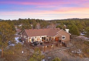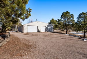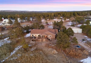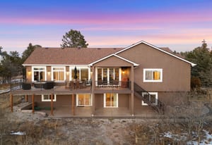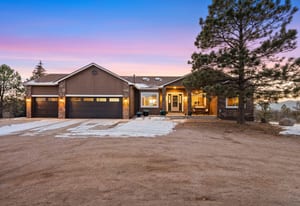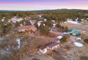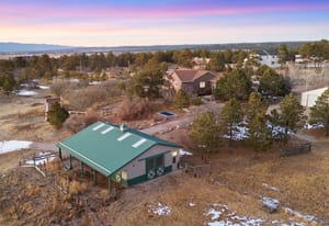 The most sought after and desirable location in Western Black Forest w/ 5 treed and meadow acres, tremendous sweeping views of Pikes Peak, the front range and city lights, a custom built 4,000 rancher w/ walk-out lower level, 3,100+ sq ft RV garage w/ heated workshop, 1,400+ sq ft barn w/ 4 stalls, a second 4 stall barn. The best of both worlds living on beautiful close-in acreage at the edge of the city w/ convenient access to everything you need. Beautifully remodeled home. High end kitchen remodel w/ high quality cabinetry, a very rare slab granite with copper veins, marble backsplash, under cabinet lighting, massive entertaining island, 2 sinks, copper farmhouse sink, high end Miele appliances, a built-in espresso machine, custom hood, cabinetry paneled Miele refrigerator. New interior doors, hardware and trim throughout. Luxury vinyl floors. 5 bedrooms (3 on the main level), newly remodeled primary bath, 4 total baths, central A/C, 13 car garage. Jaw dropping views from all southwest facing windows and the new 42x16 composite and metal deck. New lower level stamped concrete patio and fenced dog yard. New oversized 4 panel sliding door system in dining room w/ double opening. High end fireplace and stone surround in great room. No covenants or HOA. Huge RV garage workshop w/ electric, a heated workshop, 3 large oversized overhead doors - room for RV's, boats & more! Two barns - one barn w/ 4 stalls, water, electric, hay storage, runs and room to add more stalls. Secondary 4 stall barn. Only minutes from Northgate, the Air Force Academy, Flying Horse Signature Golf Course. Close to Black Forest Regional Park. Quick access to Highway 83, Powers and I-25 making an easy commute to Colorado Springs or Denver. Award winning School District 20. Perfect mixture of Ponderosa Pines, Aspens, Scrub Oak and pasture. Fully fenced and gated acreage. Rarely does a property w/ this location, unbelievable views and amenities come on the market. Zones for horses and other animals.