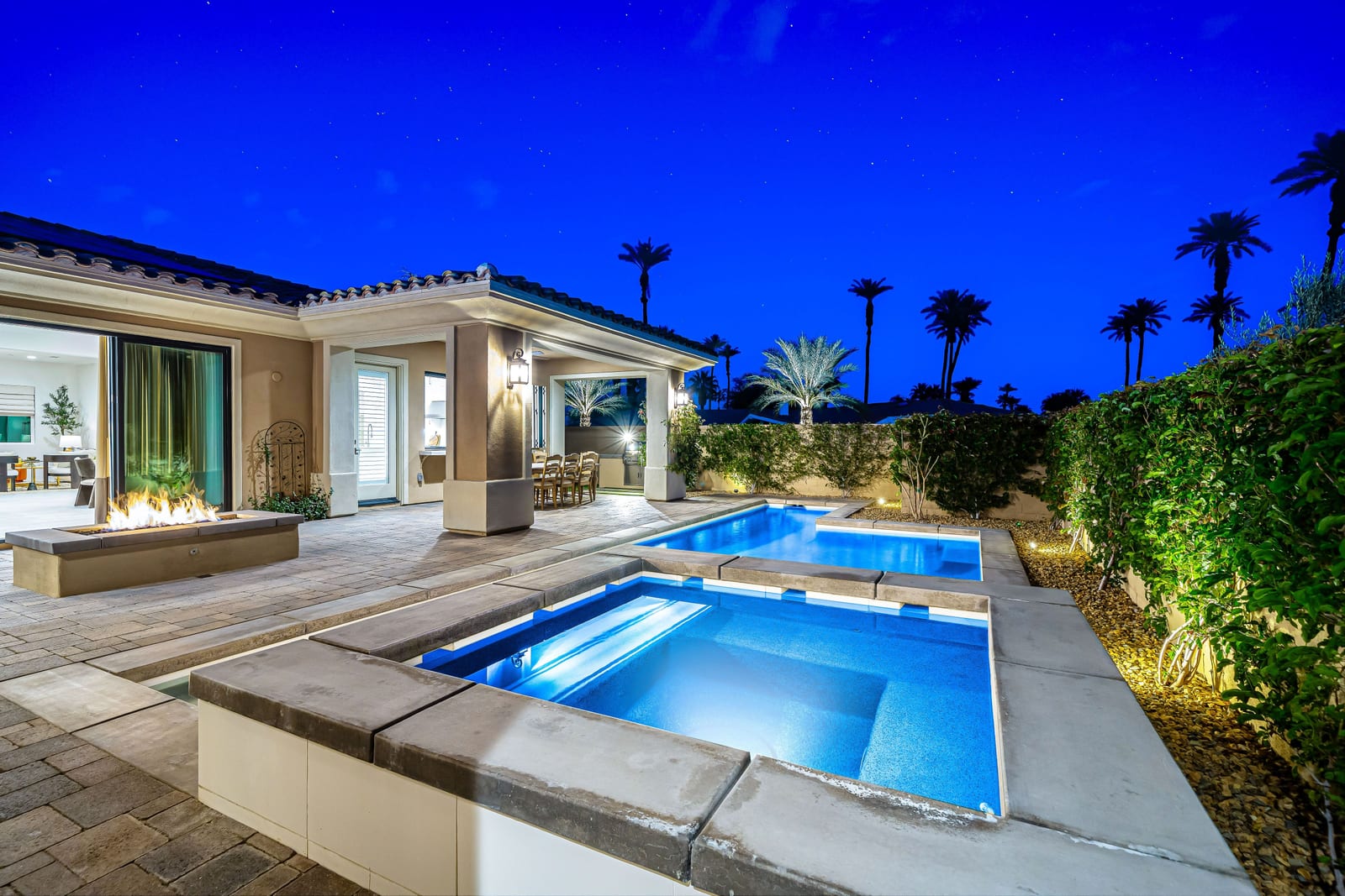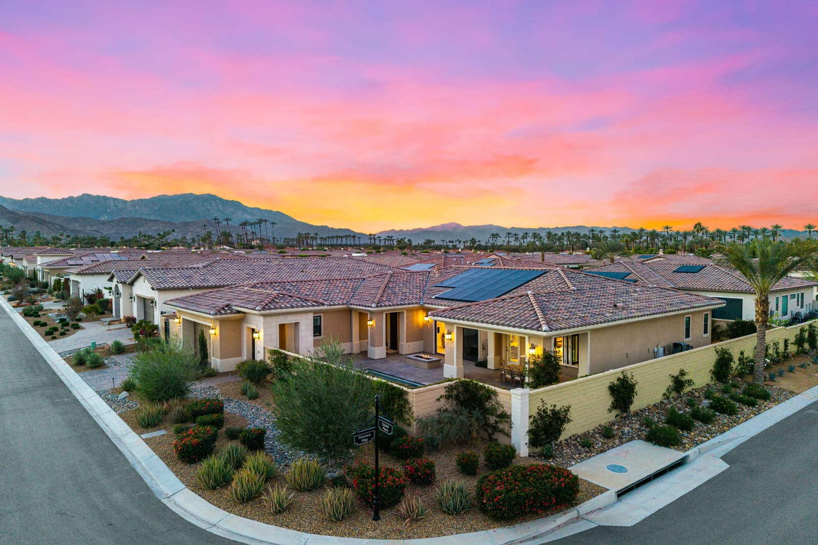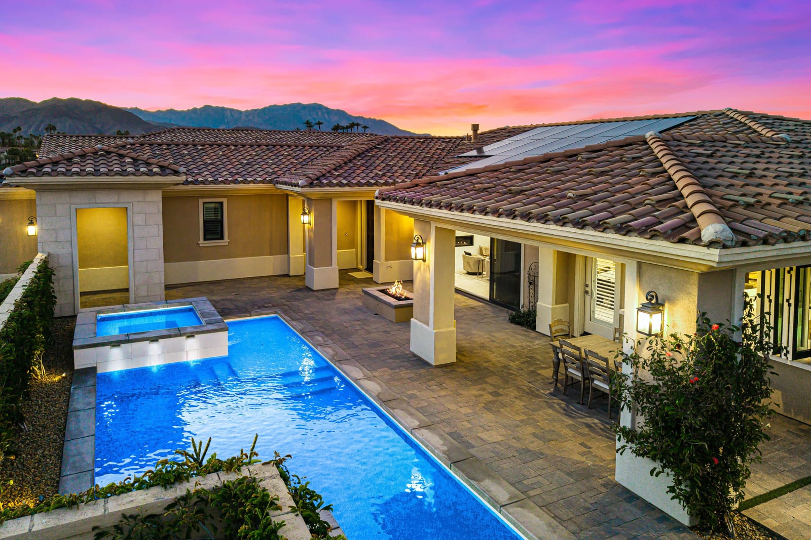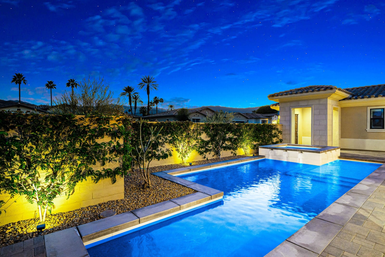 No expense has been spared in the thoughtful upgrading and customization of this newer residence, built in 2022 with paid Solar and ideally located within the highly sought- after gated community of Province in Indian Wells. Designed for refined desert living , this exceptional home blends contemporary elegance with effortless indoor-outdoor flow. The expansive great room floor plan is bathed in natural light with walls of glass sliders opening to a beautifully designed, low maintenance, front loaded yard. Here a sparkling pool and spa, fire feature and unobstructed vistas of the Santa Rosa mountains create an idyllic setting for entertaining or tranquil relaxation. The residence offers 3 spacious bedrooms, each ensuite with their own private baths and nicely separated rooms, providing comfort and privacy for owners and guests alike, along with an additional powder room. A gourmet chef's kitchen impresses with quartz counters , premium wolf appliances, upgraded custom cabinetry, and a seamless connection with the living and dining spaces- perfect for both everyday living and hosting memorable gatherings. Completing the property is a fully enhanced two car attached garage , featuring built -in cabinetry, epoxy flooring , a split Ac system and a whole home water softening system- underscoring the meticulous attention to detail found throughout. This is modern Indian Wells living at it's finest. Where luxury lifestyle and breathtaking mountain views come together seamlessly.