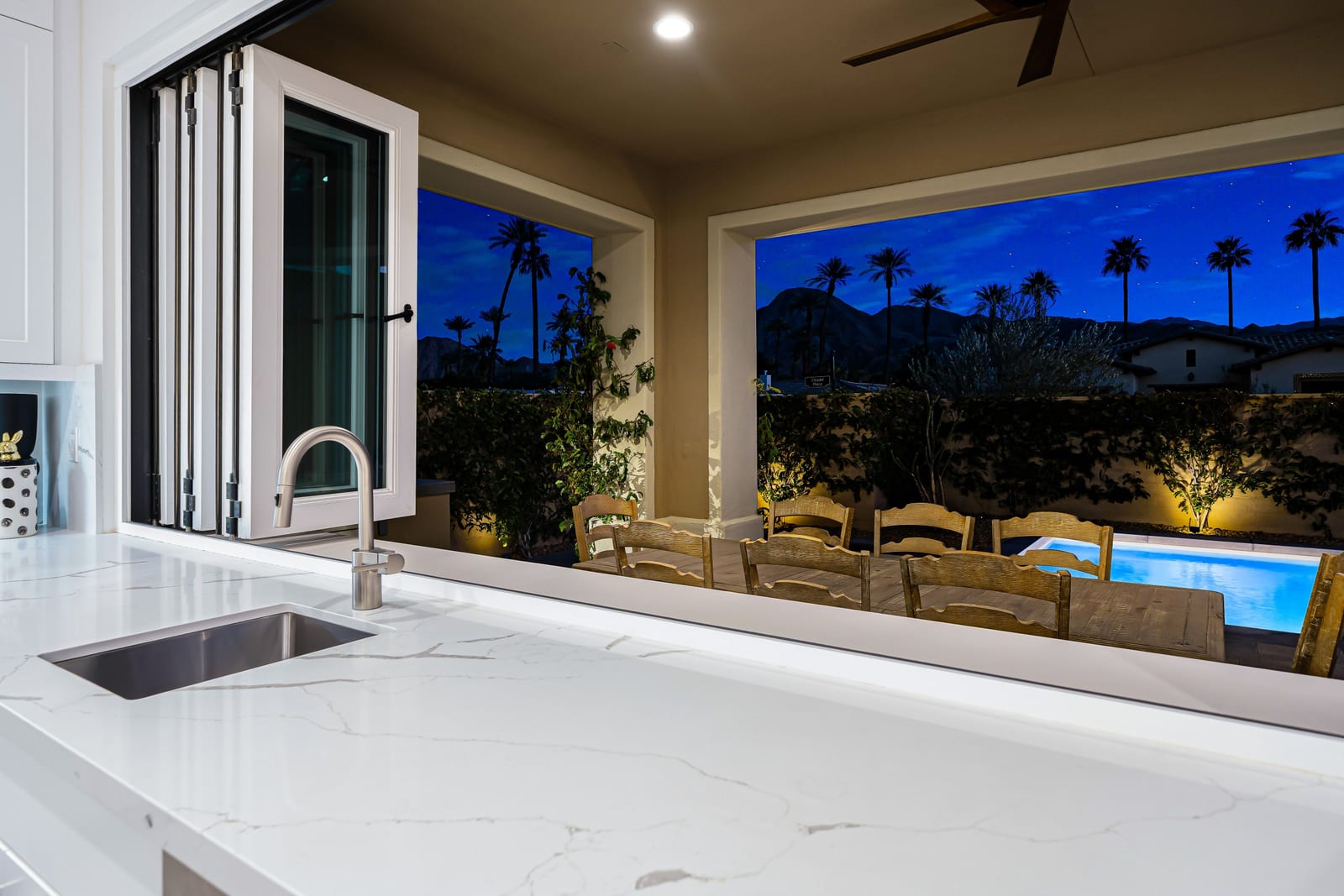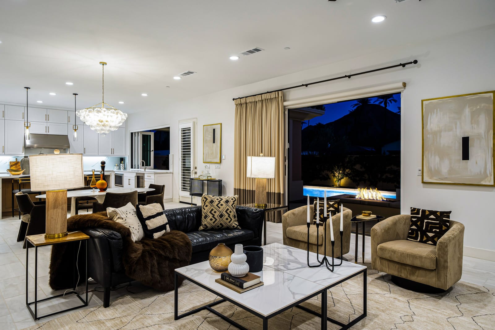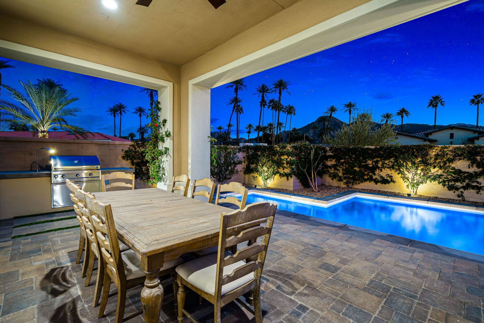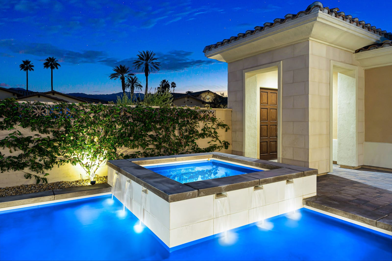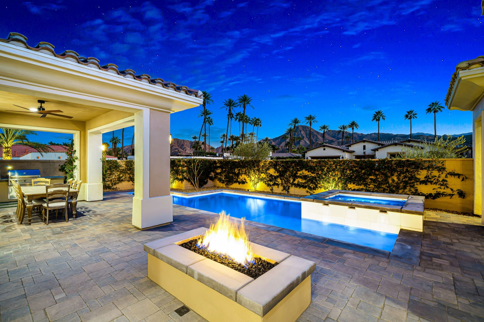 No expense has been spared in the thoughtful upgrading and customization of this newer residence, built in 2022 with paid Solar and ideally located within the highly sought- after gated community of Province in Indian Wells. Designed for refined desert living , this exceptional home blends contemporary elegance with effortless indoor-outdoor flow. The expansive great room floor plan is bathed in natural light with walls of glass sliders opening to a beautifully designed, low maintenance, front loaded yard. Here a sparkling pool and spa, fire feature and unobstructed vistas of the Santa Rosa mountains create an idyllic setting for entertaining or tranquil relaxation. The residence offers 3 spacious bedrooms, each ensuite with their own private baths and nicely separated rooms, providing comfort and privacy for owners and guests alike, along with an additional powder room. A gourmet chef's kitchen impresses with quartz counters , premium wolf appliances, upgraded custom cabinetry, and a seamless connection with the living and dining spaces- perfect for both everyday living and hosting memorable gatherings. Completing the property is a fully enhanced two car attached garage , featuring built -in cabinetry, epoxy flooring , a split Ac system and a whole home water softening system- underscoring the meticulous attention to detail found throughout. This is modern Indian Wells living at it's finest. Where luxury lifestyle and breathtaking mountain views come together seamlessly.