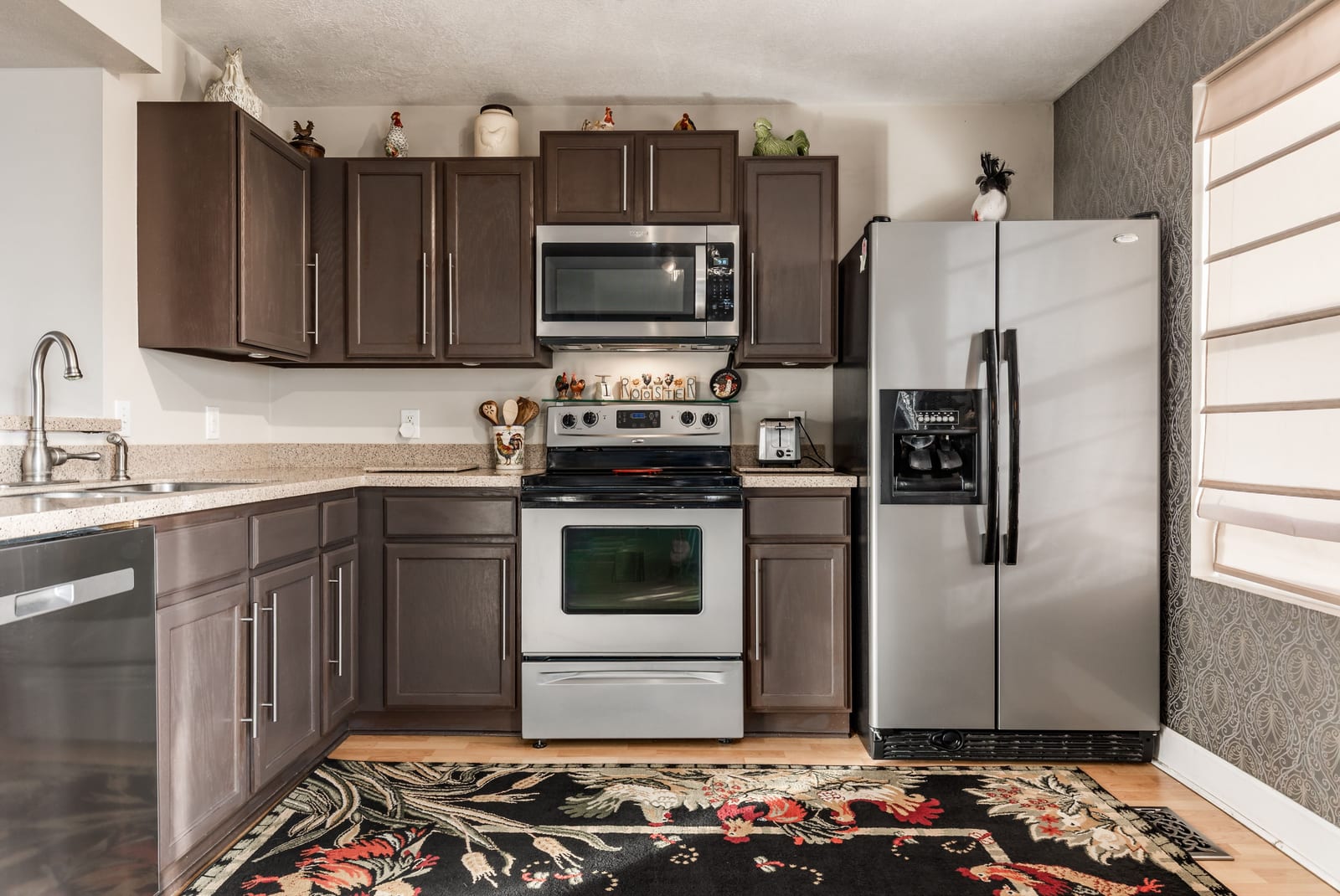 Perched on the corner of Archmore and Keltic Courts, this smartly designed row end townhouse has an open quality, natural sunlight and mountain views. You'll enjoy the morning sun streaming through the kitchen and dining area. The main floor living area has laminated flooring and is anchored with a gas fireplace framed by a traditional mantle. Three bedrooms upstairs. Walk out basement accesses the fully fenced backyard with storage shed. Basement living area is considered a bedroom but could be used as a common area, a gym, family room or home office. Community has a lovely duck pond with fountains, 2 picnic areas, a basketball hoop and RV parking. Adjacent to Mountain View corridor ...