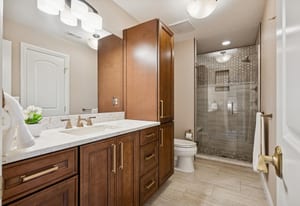 An exceptional expression of contemporary sophistication, this 5 bedroom, 6 bath residence offers elevated living in the heart of Cherry Creek North, just steps from the neighborhood’s most coveted dining, shopping, and lifestyle destinations. A rare and highly sought after highlight is the coveted three car garage as well as an elevator that accesses all levels of the home. Designed with enduring craftsmanship and thoughtful detail, the home welcomes with an awe inspiring foyer where a striking staircase, 8 foot solid core doors, and soaring ceilings create a sense of grandeur and refinement. The main level is both functional and inviting, featuring a private office with new wool carpet, as well as expansive living and dining spaces tailored for entertaining. The gourmet kitchen is appointed with quartzite counters, Kohler fixtures, abundant storage, a walk in pantry, and a large eat in island designed for gathering. Culinary enthusiasts will appreciate premium Thermador appliances, including double oven, oversized refrigerator, and six burner gas range, plus two dishwashers. Indoor outdoor living is seamless, with the kitchen and living area opening to a private patio complete with an outdoor fireplace. The second level offers exceptional flexibility with a second primary suite on this level and an additional ensuite bedroom with walk in closet and a gym/office. The crown jewel is the third floor primary suite, a private sanctuary featuring its own fireplace, spa like bath with a heated jetted tub, built in “coffee” bar and a spectacular rooftop deck, an ideal escape for morning coffee, and Colorado sunsets. The finished lower level extends the home’s livability with a spacious media area and an entertaining bar setup, complete with a sink, refrigerator, and dishwasher. With a west facing orientation, the home enjoys beautiful natural light and warm afternoon glow. Both the front and back yards are fully fenced, making it ideal for pets and outdoor enjoyment.