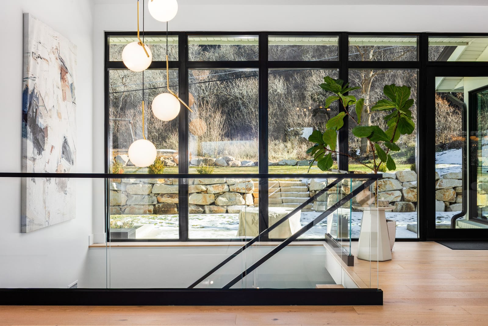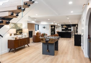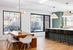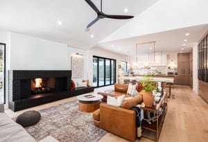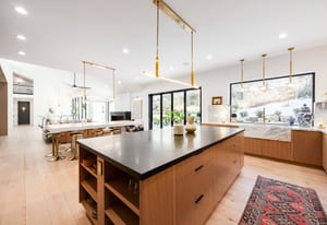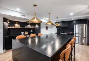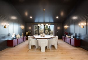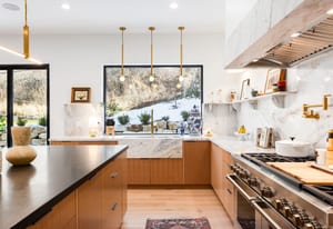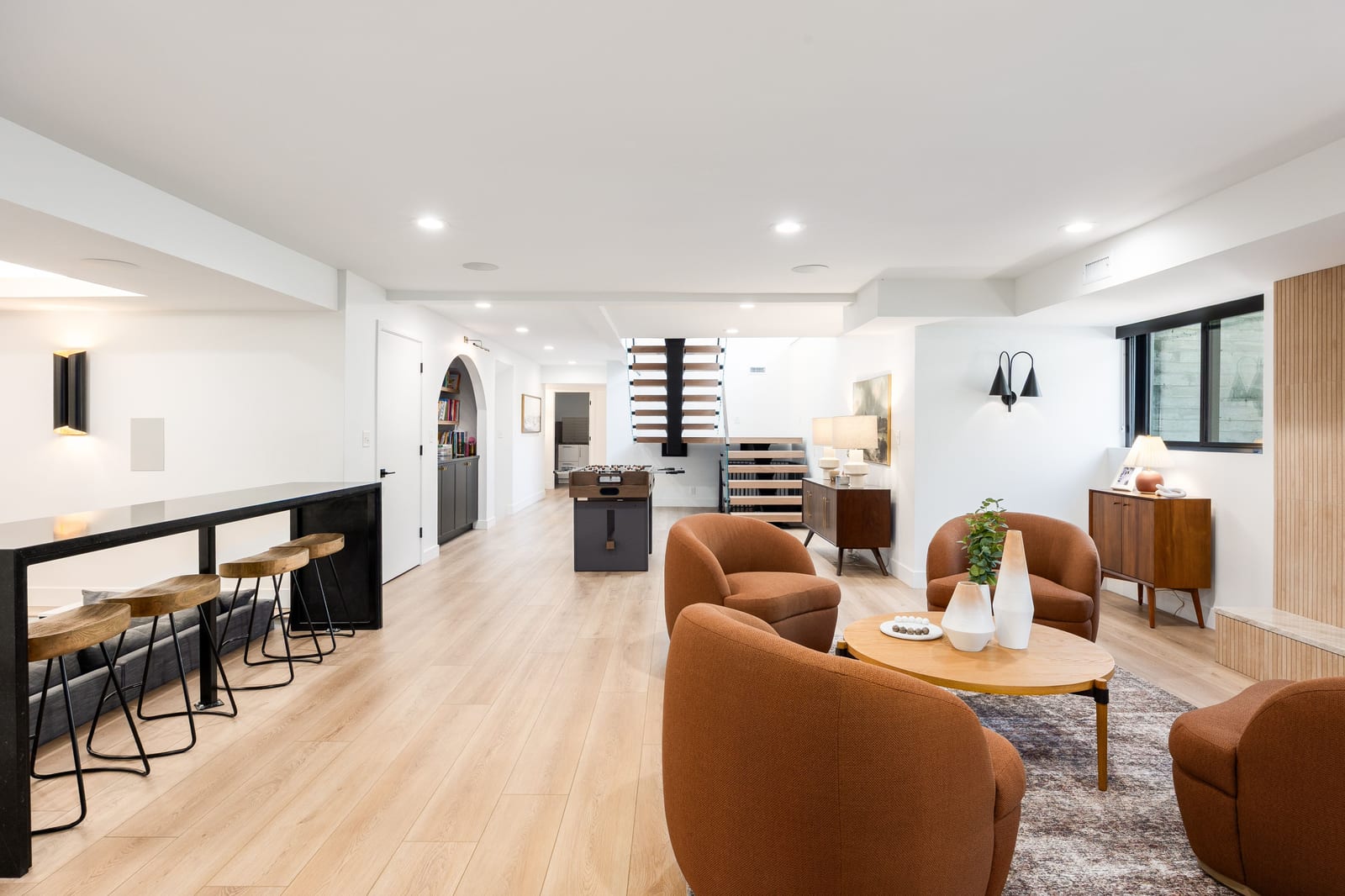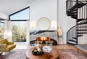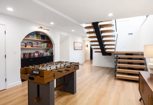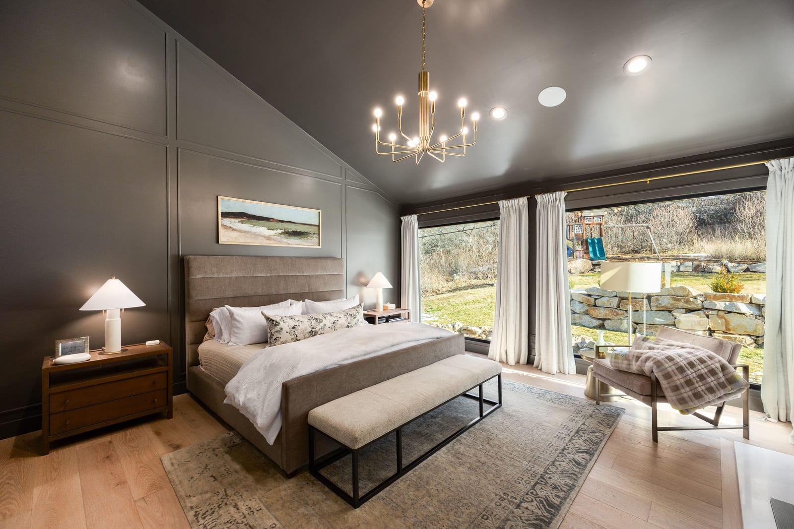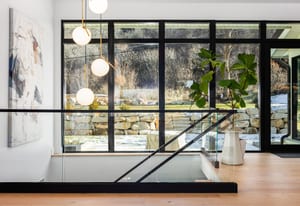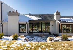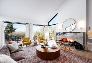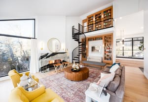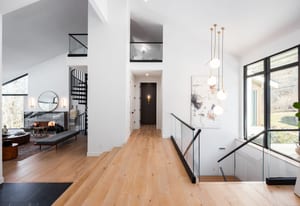 The home was masterfully realized by Stagg Design, a nationally recognized design firm, with architectural design by the renowned Hebdon Studios. Together, they created a residence that is visually compelling yet exceptionally livable, blending postmodern architecture with warmth, comfort, and a natural flow from one space to the next. Vaulted ceilings, a floating staircase, and walls of glass flood the home with natural light while framing spectacular views in every direction.