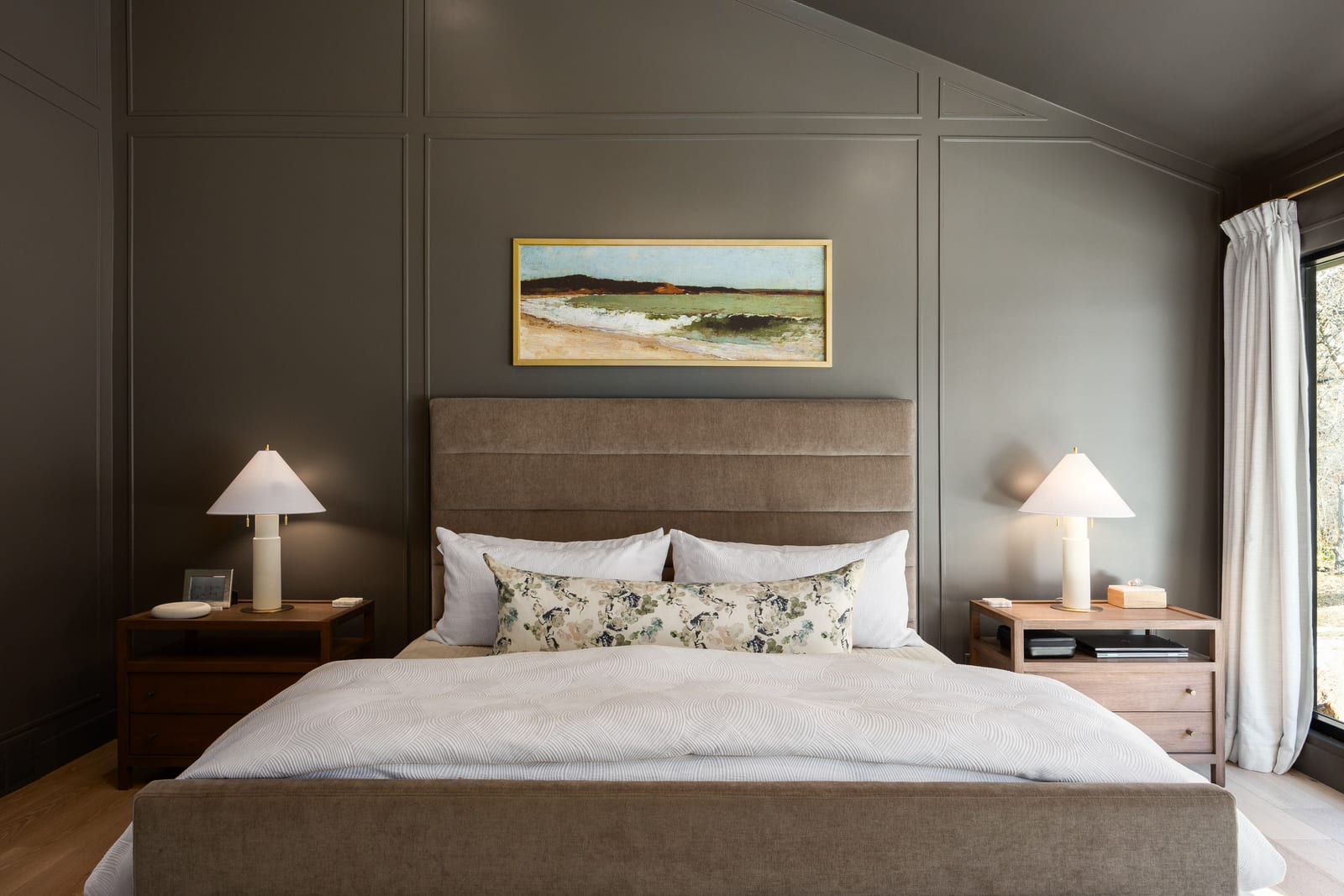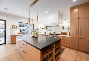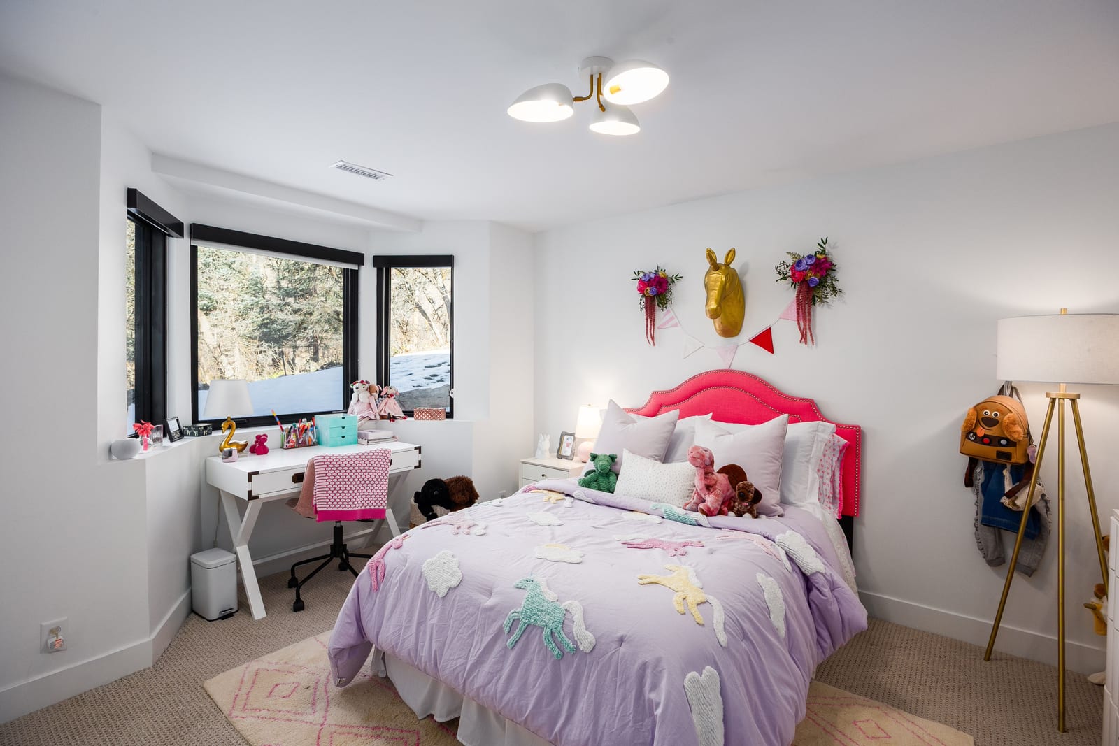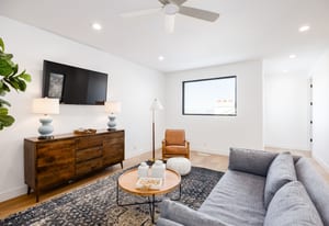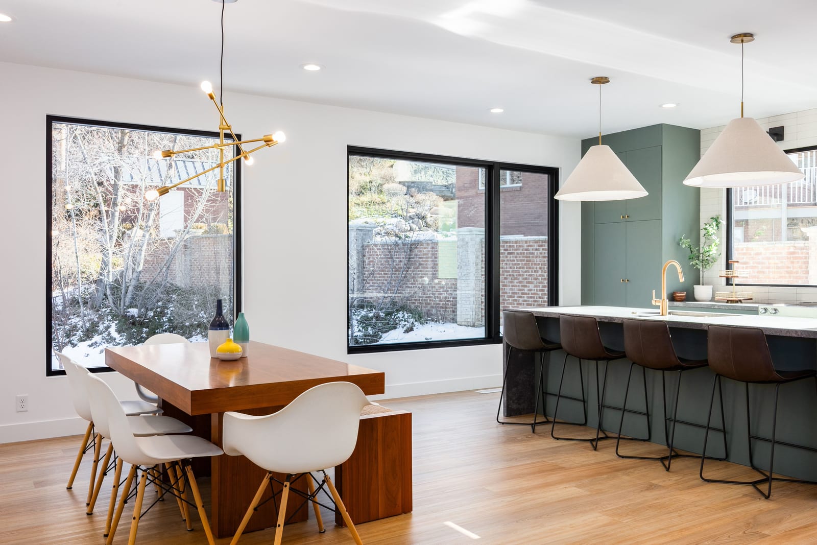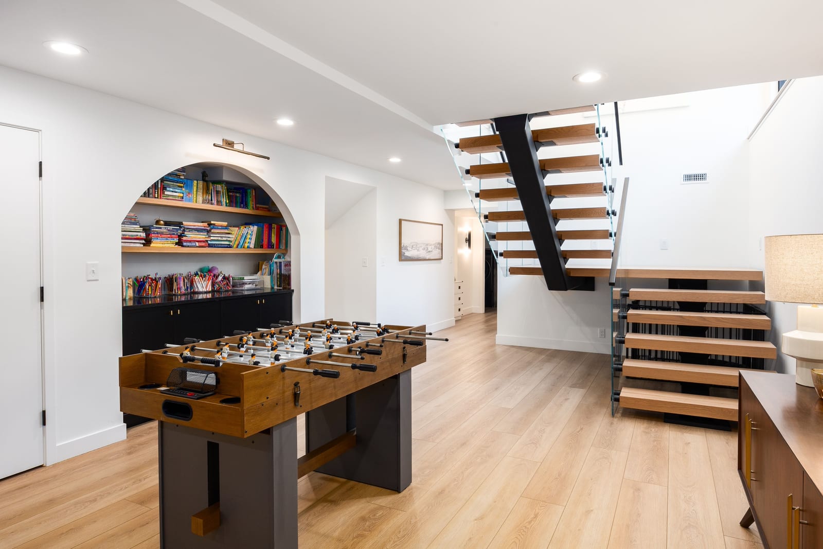 The home was masterfully realized by Stagg Design, a nationally recognized design firm, with architectural design by the renowned Hebdon Studios. Together, they created a residence that is visually compelling yet exceptionally livable, blending postmodern architecture with warmth, comfort, and a natural flow from one space to the next. Vaulted ceilings, a floating staircase, and walls of glass flood the home with natural light while framing spectacular views in every direction.