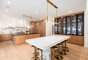The home was meticulously designed to maximize scenery from every window. The gourmet kitchen features double islands with seating for twelve, an exquisite marble slab backsplash with shelving, designer lighting, a 60 inch Wolf range with double ovens, full size Sub Zero refrigerator and freezer, and a custom built in china cabinet. A massive multi sliding door opens to a backyard entertaining area ideal for indoor outdoor living. The adjacent formal dining room with sliding glass doors flows seamlessly to the front patio, perfect for enjoying sunset views across the valley. The oversized butler’s pantry is a chef’s dream with steam and speed ovens, a warming drawer, second dishwasher, additional refrigerator, water bottle filling station, and pebble ice machine.