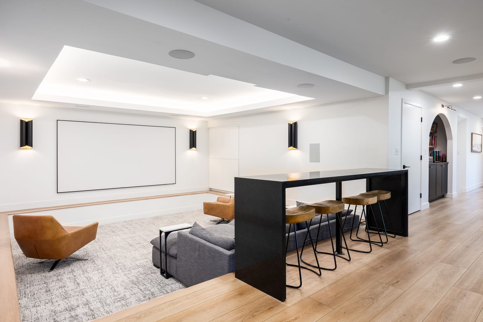 Designed for entertaining, the lower level includes a full second kitchen, movie theater with bar seating, game and lounge areas, a playful lofted playhouse, ample storage, and four bedrooms with above grade windows that flood the space with natural light. An upper level visually dramatic dance or yoga studio offers sweeping views reaching the Great Salt Lake, complemented by an elevated workout space that feels perched above the valley. A lock off attached accessory dwelling unit includes its own kitchen, dining area, family room, bedroom, and bath, making it ideal for guests to stay