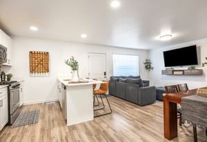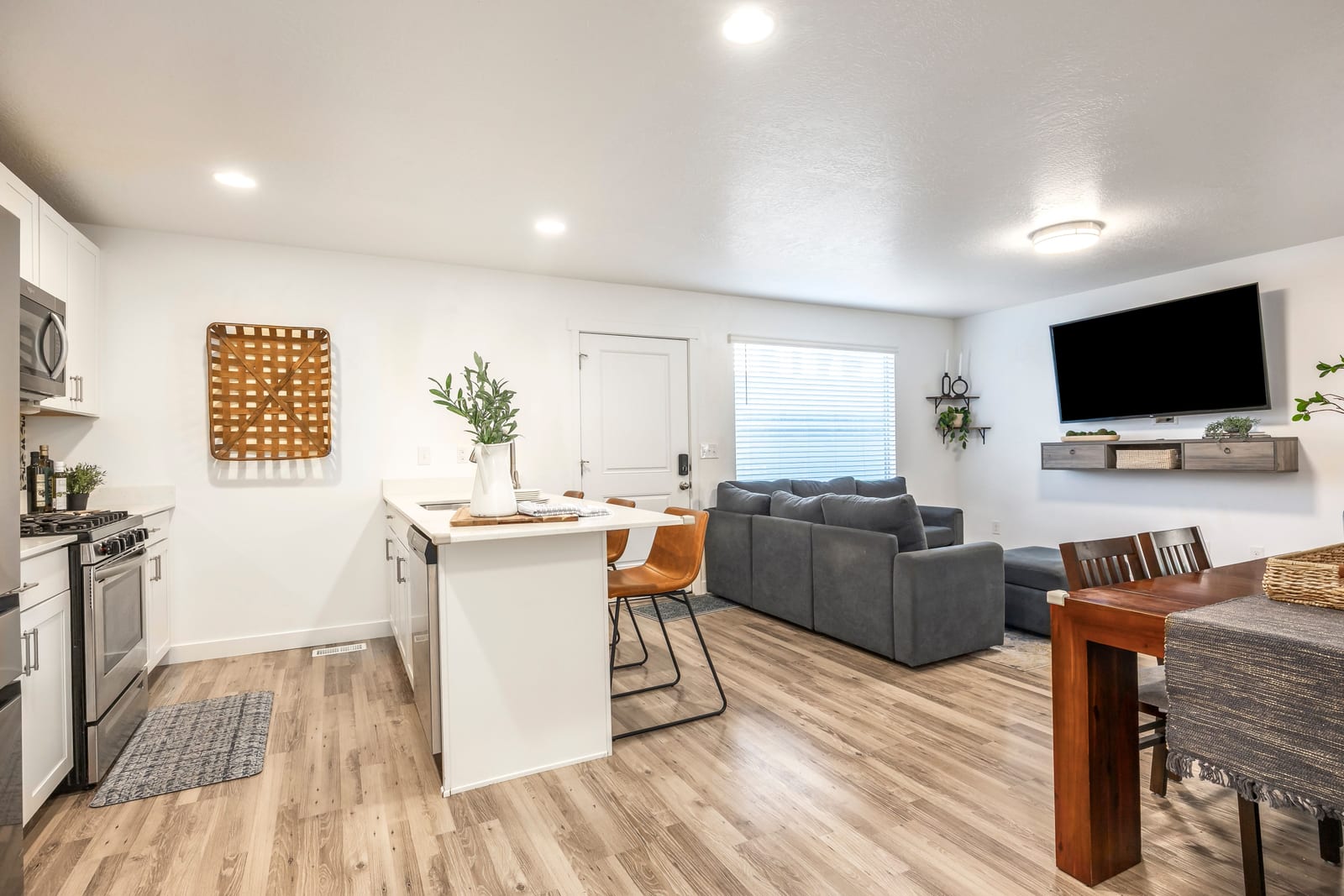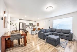 This well maintained 3 bedroom 2 bathroom end unit townhome is located in the River Run community in Saratoga Springs and offers a layout that feels open, bright, and easy to live in. The kitchen features white quartz countertops, a modern backsplash, stainless steel appliances, and opens seamlessly to the main living space, creating a comfortable and functional floor plan. The primary suite includes a walk in closet and a private en suite bathroom, and the washer and dryer are included for added convenience.