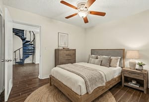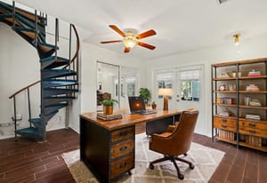The "Income & Independence" Suite is a rare find in Lutz real estate! The upper level features a private bedroom and bathroom suite with a balcony overlooking the pool. Accessible via a charming interior spiral staircase OR a completely private exterior entrance, this space is ideal for a secluded In-Law Suite, a private teen retreat, or a potential income-generating rental.