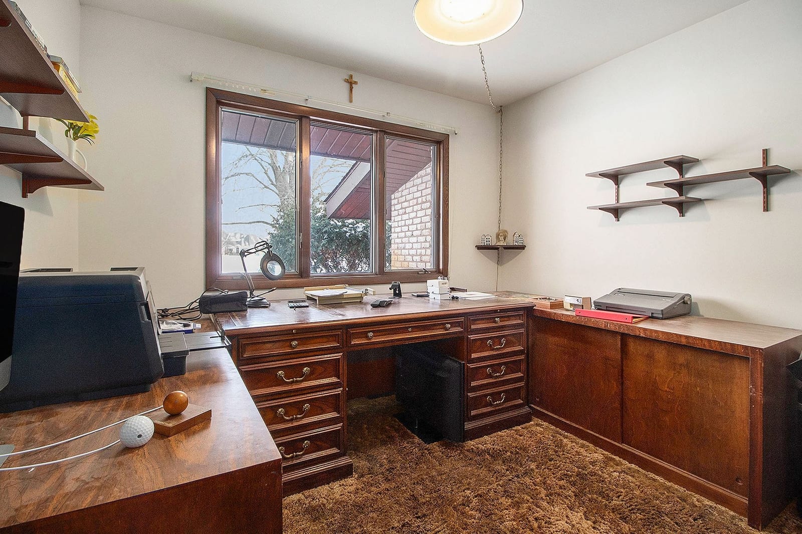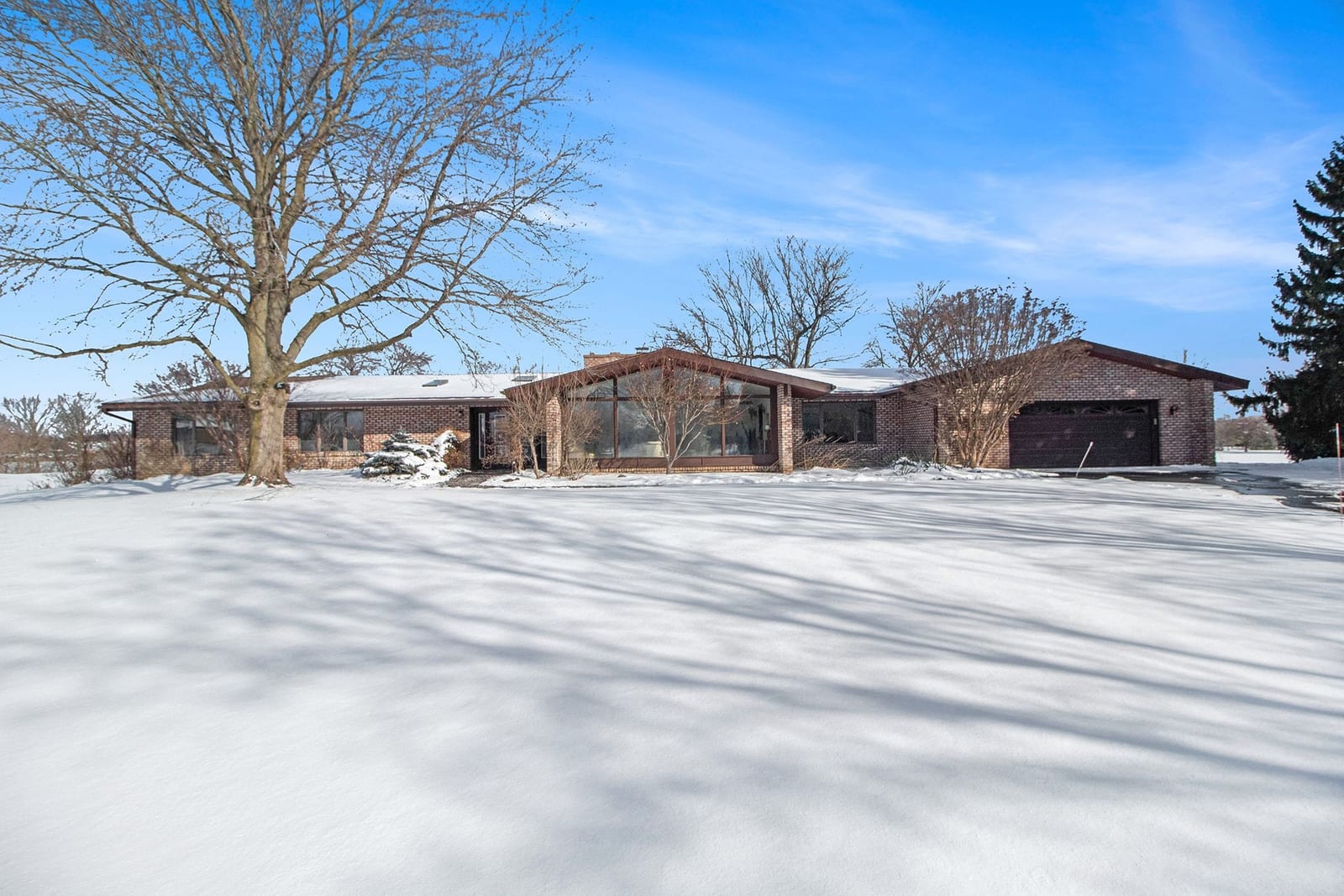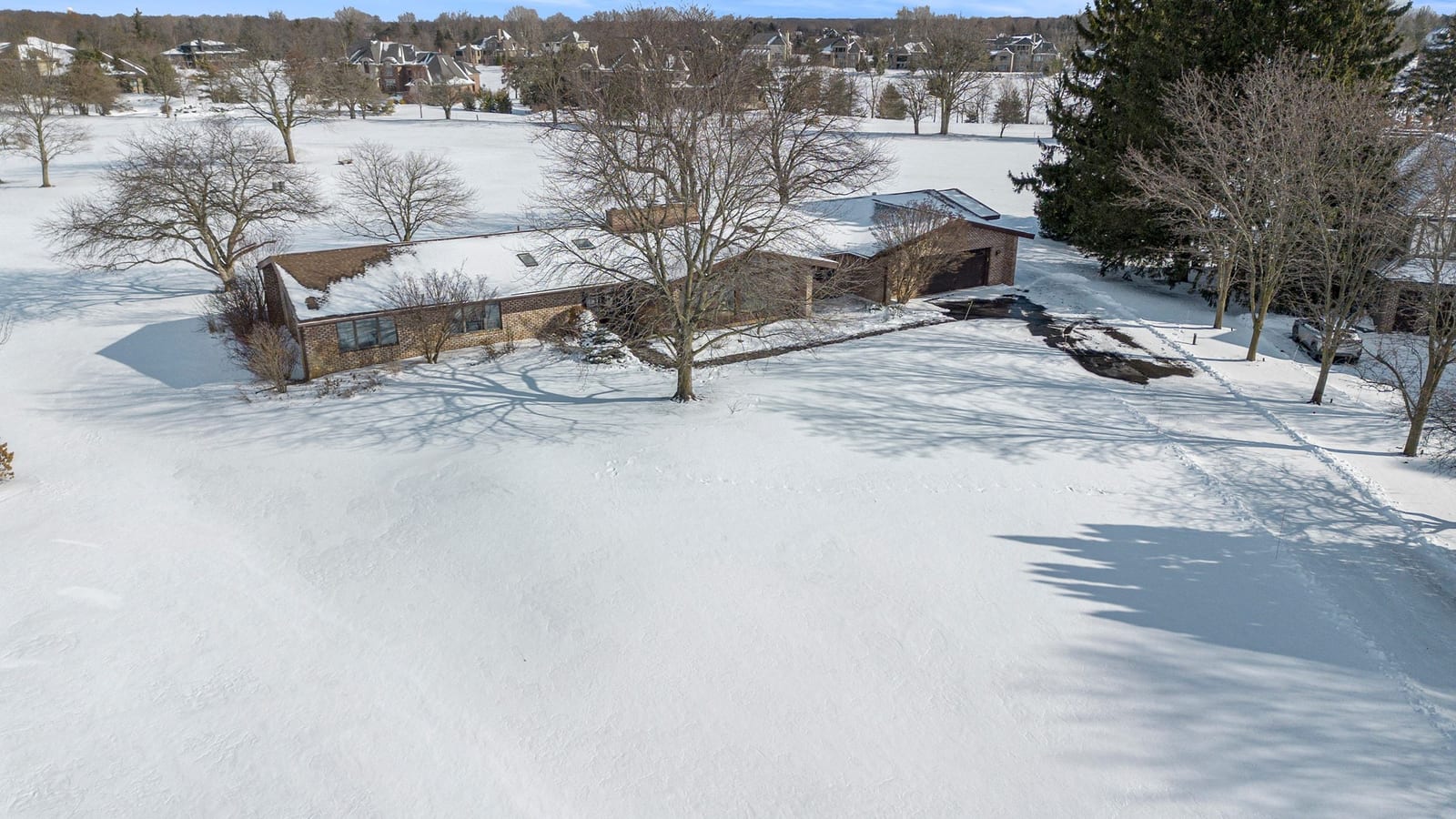 Sprawling brick ranch on a quiet cul‑de‑sac overlooking the #11 fairway at Travis Pointe Country Club. This 4 BR/2.5 bath home offers a generous primary suite with a slider to a private deck, dual‑sink bath, and stand‑alone shower. Three additional large bedrooms provide ample closet space, first floor study, and convenient first‑floor laundry. Towering windows in the family and dining rooms frame sweeping views of the property. The spacious kitchen with breakfast nook delivers abundant prep and storage space. Enjoy cozy evenings by one of two gas fireplaces (currently capped off) or relax on the beautiful brick paver patio taking in the breathtaking fairway views. Additional highlights include a 3‑car garage, full basement awaiting your personal touch, two decks, and extensive outdoor living space. Saline schools with Lodi Township taxes and an ideal location convenient to both downtown Ann Arbor and downtown Saline.