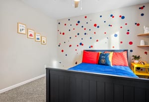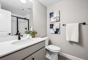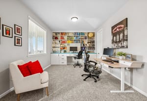 Upstairs, a lofted secondary living space offers room for a home gym, media area, or play space. The primary suite includes an oversized shower, while two additional bedrooms share a Jack-and-Jill bathroom with thoughtfully separated shower and bath.
