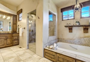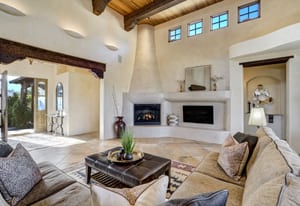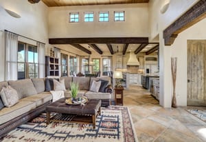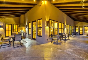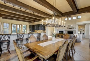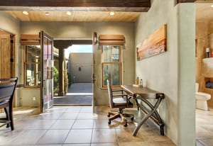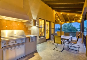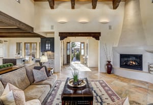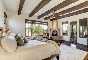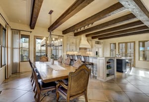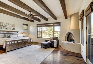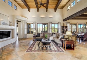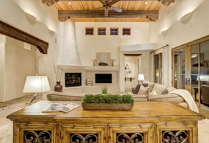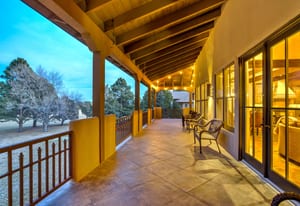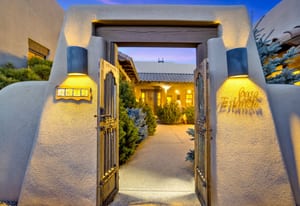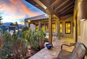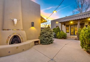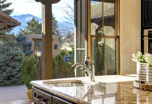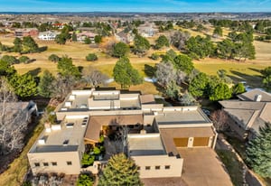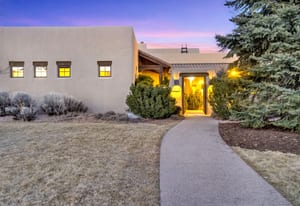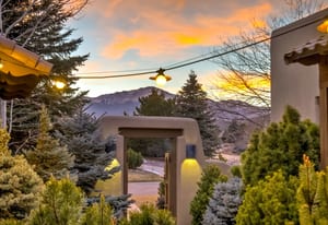 Welcome to Casa Estancia — where Santa Fe–inspired Pueblo Revival architecture meets elevated living in the gated community of Kissing Camels. Here, the soul of the home exudes tranquility. Originally crafted as an acclaimed builder’s personal residence, this timeless home reflects intentional design, enduring materials, and architectural warmth throughout. It lives like a retreat bathed in serenity, seamlessly blending indoor and outdoor living. The substantial outdoor courtyard, anchored by a kiva fireplace, frames Pikes Peak beneath breathtaking mountain sunsets—where firelight harmonizes with a soul-inspiring Colorado sky. At the rear, a wood-beamed concrete patio overlooks pine-lined open space along the 9th fairway with quiet privacy, sweeping golf course views, and radiant Colorado sunrises. The thoughtfully designed floorplan emphasizes main-level living. A rare 700+ square-foot main-level attached casita allows exceptional flexibility for multigenerational living, extended guests, or a private executive suite. Throughout the home, substantial granite surfaces, custom cabinetry, and illuminated art niches reflect elevated craftsmanship. Five artistic kiva fireplaces add warmth and architectural character, while a private wine cellar and steam shower in the primary bath enhance everyday luxury. The walkout lower level expands the retreat experience, opening to a private patio and featuring a wet bar, exercise room, two bedrooms with en-suite baths, and abundant storage. An oversized garage with a dedicated storage room, plus additional lower-level storage, ensures practical functionality. Situated on a flat mesa, Kissing Camels is known for its walkable streets, e-bike-friendly terrain, and striking views of Garden of the Gods and Pikes Peak. Optional club membership provides premier golf, wellness, tennis, pickleball, dining, and vibrant social amenities. Casa Estancia is a private sanctuary where design, landscape, and lifestyle converge in rare harmony.