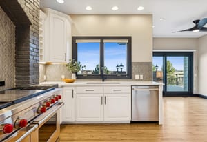Stunning ranch-style home offering a serene setting, scenic views, and extensive recent upgrades. Tucked at the end of a quiet cul-de-sac on a large private lot, this exceptional residence captures distant downtown and farmland views while backing to a community greenbelt and trail. The elevated walk-out design provides seamless main-level living infused with mature landscaping and lovely fruit trees. The open floor plan is highlighted by a spacious great room with soaring ceilings, expansive windows and sliding doors, rich hardwood flooring, and soft neutral paint tones. The chef’s kitchen is a true showpiece, featuring stainless steel appliances including a Wolf six-burner gas range with double ovens, Sub-Zero refrigerator, Bosch dishwasher, and Dacor microwave. Crisp quartz countertops, white cabinetry with glass accents, a pantry, and breakfast nook complete this inviting space. The main-level primary suite offers a private retreat with an updated five-piece bath featuring a clawfoot tub. A gracious dining room, formal study, large laundry/mud room, and two additional bedrooms with a renovated shared ¾ bath complete the main level. The walk-out lower level includes two additional bedrooms, two baths, and a generous recreation and media space with a bar—ideal for entertaining—along with ample storage and closet space. Indoor-outdoor living shines with an expansive deck spanning the length of the home, complete with an automatic awning, raised garden beds, gate, and lighting. The three-car heated garage features a convenient workbench and extensive built-in cabinet storage. Recent upgrades include new carpet throughout, interior and exterior paint, a renovated kitchen and two main-level bathrooms, updated decorative lighting and ceiling fans, a new AC/furnace unit, garage door opener, and back door slider. Located in the prestigious Westwoods Ridge neighborhood, residents enjoy miles of trails, a new playground, and close proximity to abundant amenities.