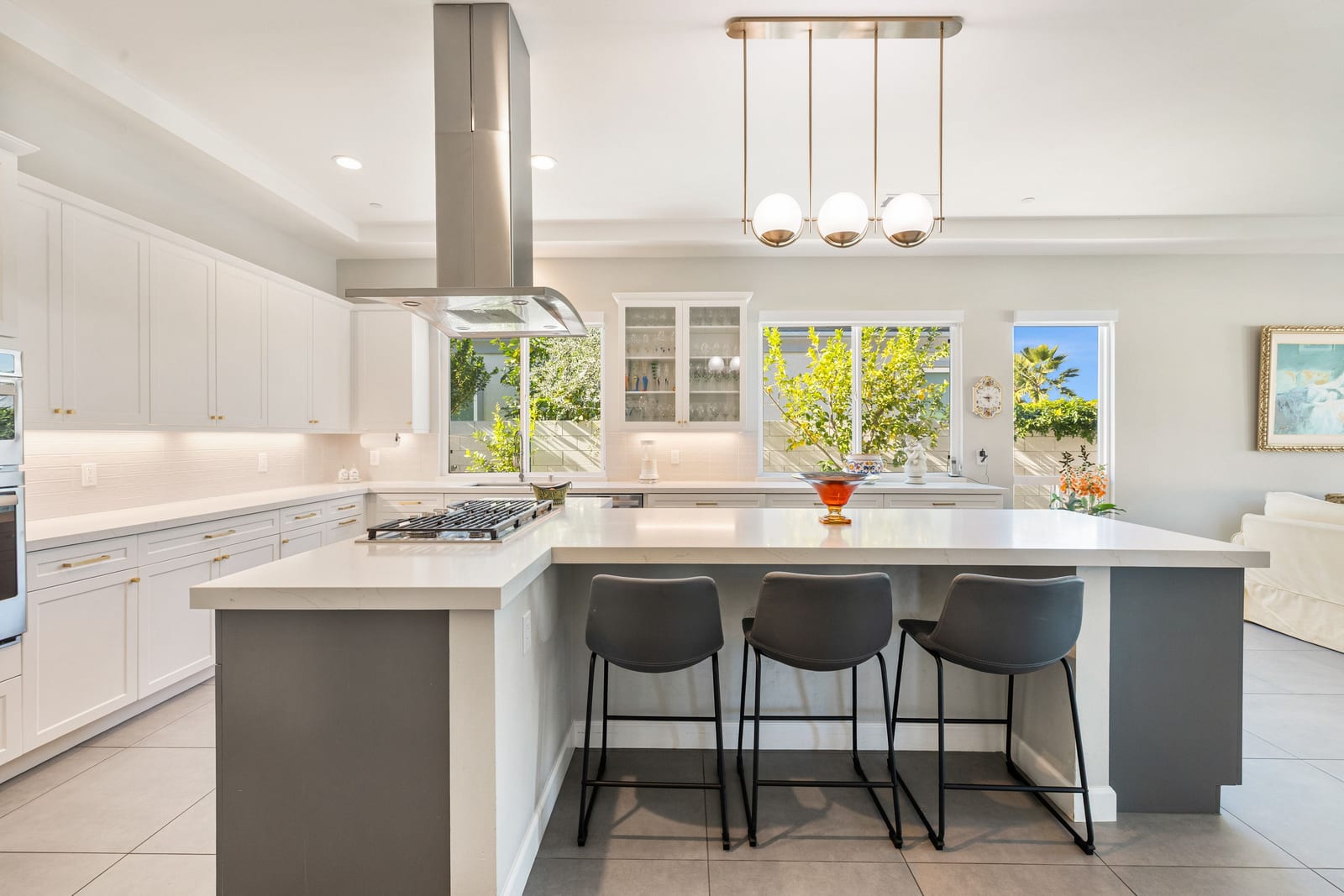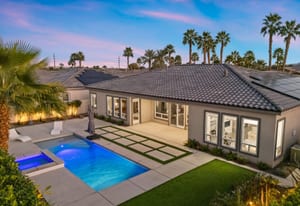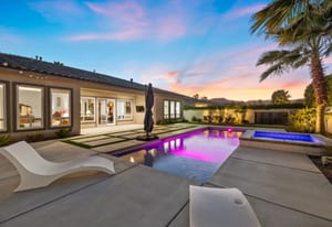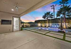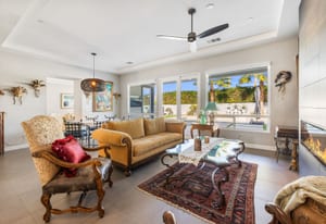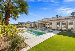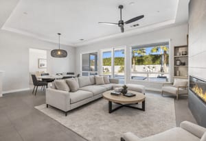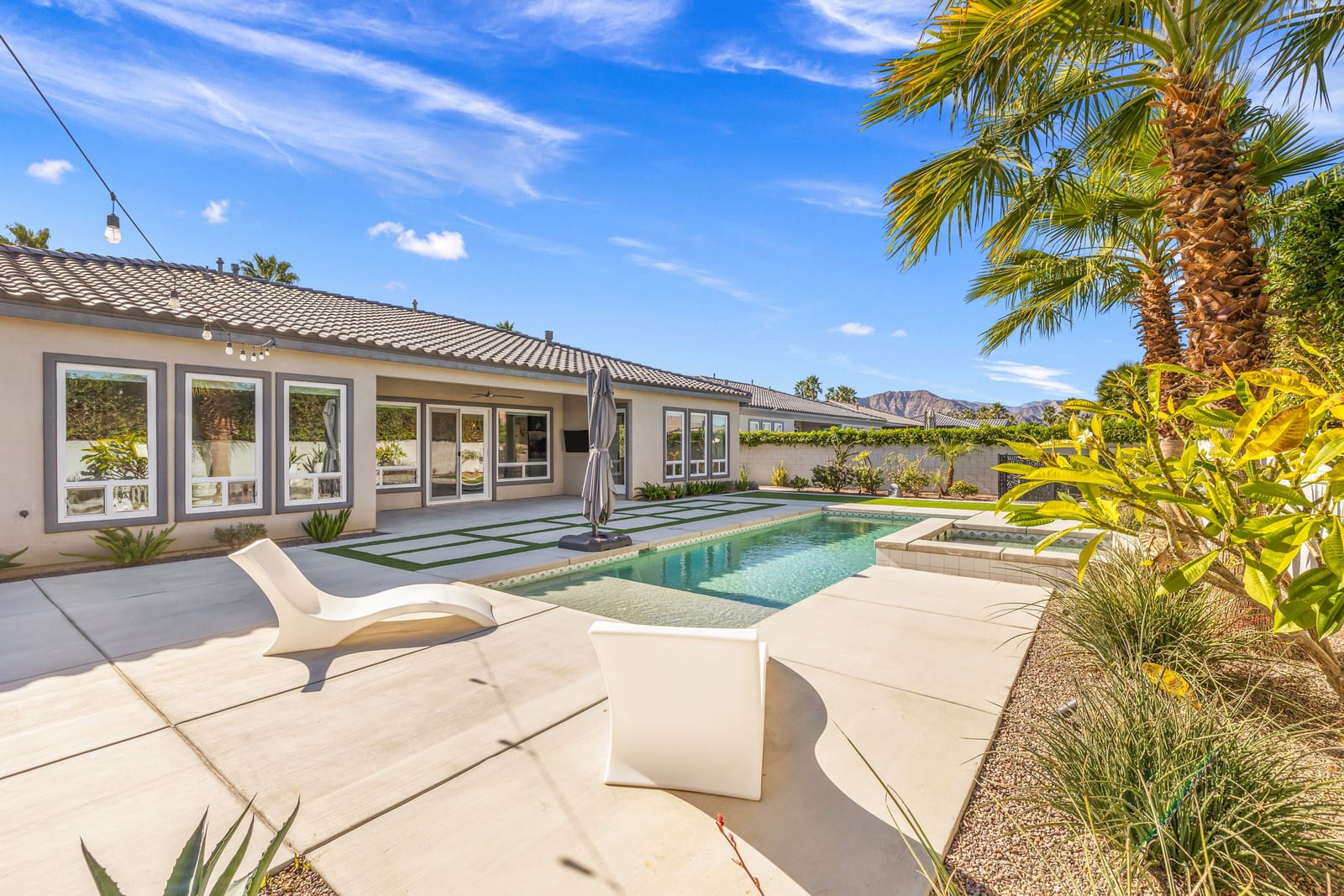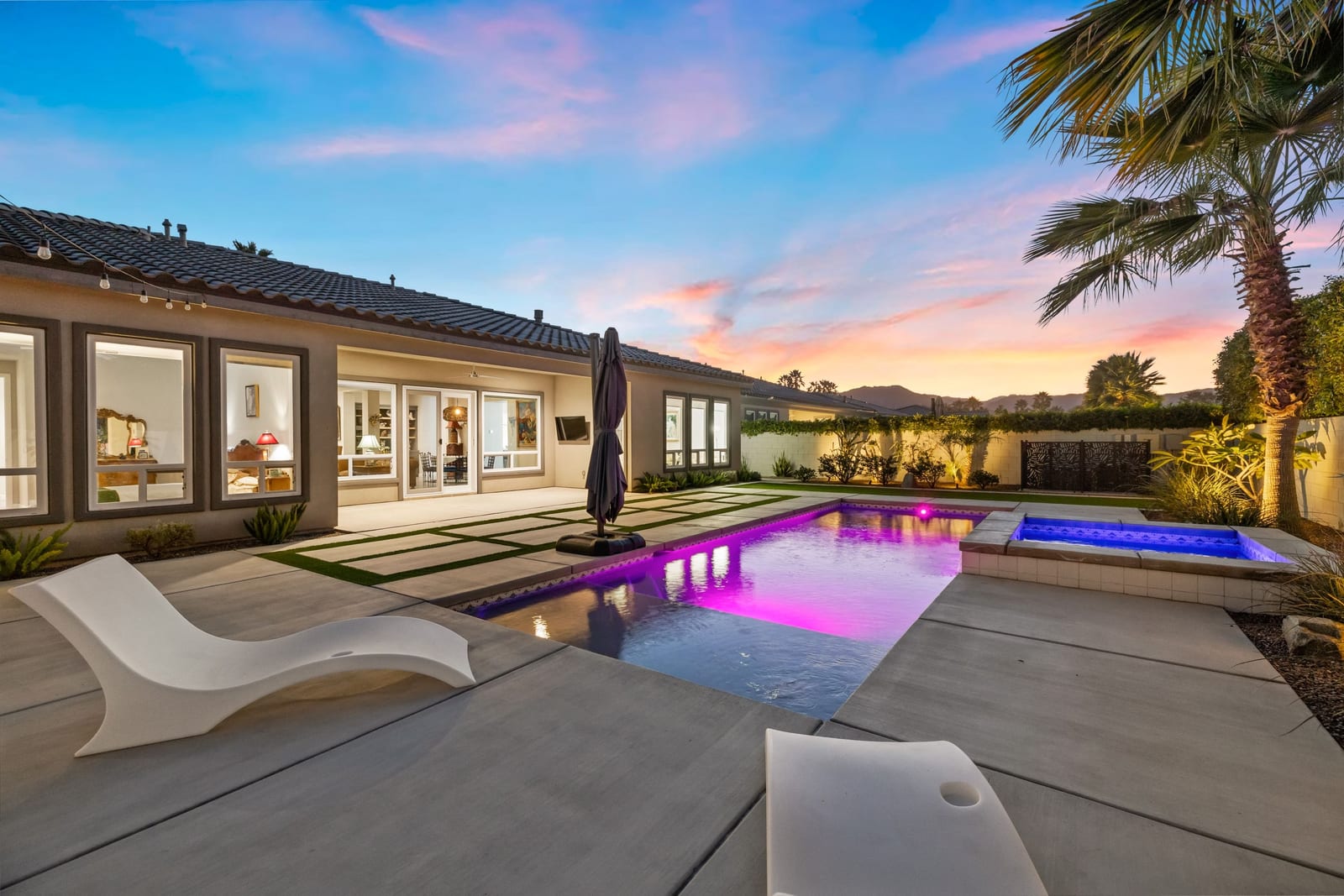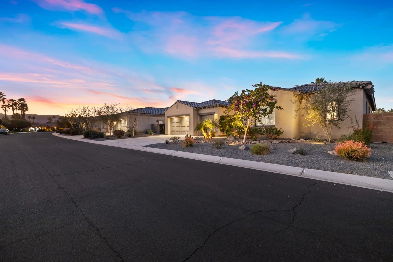 81890 Thoroughbred Trail | Rancho Santana | South La Quinta Situated within the sought-after Rancho Santana community, 81890 Thoroughbred Trail presents a compelling opportunity to own a newer-construction, contemporary home in one of La Quinta's most desirable residential settings. Completed in 2021, this later phase is especially prized for its transitional design aesthetic, contemporary features and appliances, wide and well-maintained streets, mature landscaping, and overall sense of space, distinguishing itself from earlier phases of the community. The residence spans 2,912 sq ft and offers 3 bedrooms and 4 bathrooms, featuring an open-concept layout designed for today's buyer and the desert lifestyle. Contemporary finishes, a seamless kitchen-to-living connection, and a spacious primary suite create a home that feels current, comfortable, and easy to live in. Each secondary bedroom is en suite, providing privacy and flexibility for family or guests, while the third bedroom offers its own private entrance, ideal for visitors or extended stays. The contrast between clean white kitchen amenities, large-format darker tile flooring, and the fireplace detail adds visual interest and broad décor appeal. Owned Solar is another Asset with underestimated utility and long-term value. Set on a generous 10,000+ sq ft lot, the spacious backyard offers ample room for relaxed desert poolside living and entertaining, while capturing beautiful westerly San Jacinto Mountain views. Rancho Santana residents enjoy community parks, walking paths, and gathering areas, further enhancing the neighborhood's appeal. The location is complemented by proximity to many of the desert's finest lifestyle and sporting destinations, including premier private golf clubs, the Indian Wells Tennis Garden, Desert International Horse Park, Thermal Club, Jacqueline Cochran Regional Airport, polo grounds, pickleball facilities, and the Coachella and Stagecoach music festival venues. Nearby Old Town La Quinta and the famed La Quinta Resort offer additional options for dining, shopping, and local exploration. Whether seeking a year-round residence or a seasonal retreat, this home and community appeal to a wide range of buyers. Opportunities to own in this newer phase of Rancho Santana are limited—this is one not to be missed. Select images include virtual staging to illustrate contemporary furnishings.